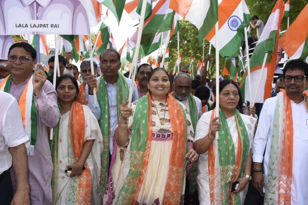 જયાં ભારતમાતા મંદિરથી જમણી તરફના સેક્ટર રિંગરોડ પરથી પસાર થતાં, યાત્રા સેક્ટર-7 સરકારી પગારકેન્દ્ર શાળા, સેક્ટર-7 ગાર્ડન થઈને સેક્ટર-7ના મુખ્ય શોપિંગ સેન્ટર સુધી પહોંચી હતી. દેશભક્તિના ગીતો સાથે આ યાત્રા જેમ જેમ રૂૂટ પર આગળ વધતી હતી, તેમ તેમ લોકોમાં દેશપ્રેમનો સૈલાબ ઉમટયો હતો. રૂૂટ પર સ્થાનિકો દ્વારા ભવ્ય તિરંગા યાત્રાને પુષ્પ વૃષ્ટિ સહ આવકાર અને વધામણા કરવામાં આવ્યા હતા. સેક્ટર-7ના મુખ્ય શોપિંગ સેન્ટર ખાતે પોલીસ બેન્ડની સુરાવલીઓ સાથે રાષ્ટ્ર ગાન અને ભારત માતાની જયઘોષ સાથે યાત્રા પૂર્ણ થઈ હતી.