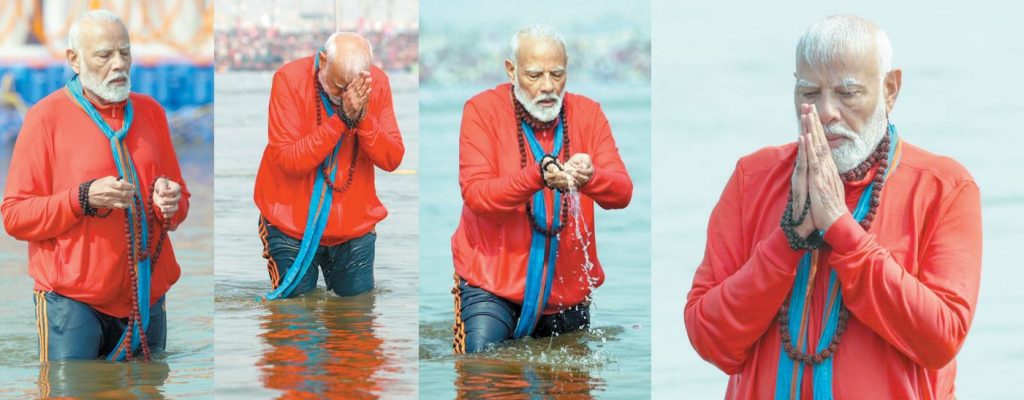 આ બન્ને ઘટના સ્પષ્ટપણે મતદારોને સુક્ષ્મ સંદેશ આપવાનો અવસર હતો. મોદીએ સંગમ સ્નાન વખતે ગળા-હાથમાં રૂદ્રાક્ષ સાથે ભગવા વસ્ત્રો ધારણ કર્યા હતાં. સંગમ સ્નાન બાદ તેઓ સાધુ સંતોને પણ મળ્યા હતાં. વડાપ્રધાન નરેન્દ્ર મોદીની મુલાકાતો હંમેશા મોટી સંખ્યામાં દર્શકોને ધ્યાનમાં રાખે છે. તેથી, જ્યારે પીએમ મોદી બુધવારે પ્રયાગરાજ ખાતે મહાકુંભની મુલાકાત લેશે જ્યારે દિલ્હીની ચૂંટણી માટે મતદાન ચાલી રહ્યું છે, ત્યારે આધ્યાત્મિકતા અને સૂક્ષ્મ રાજકીય સંદેશાઓનું મિશ્રણ કોઈના પર નહીં જાય.