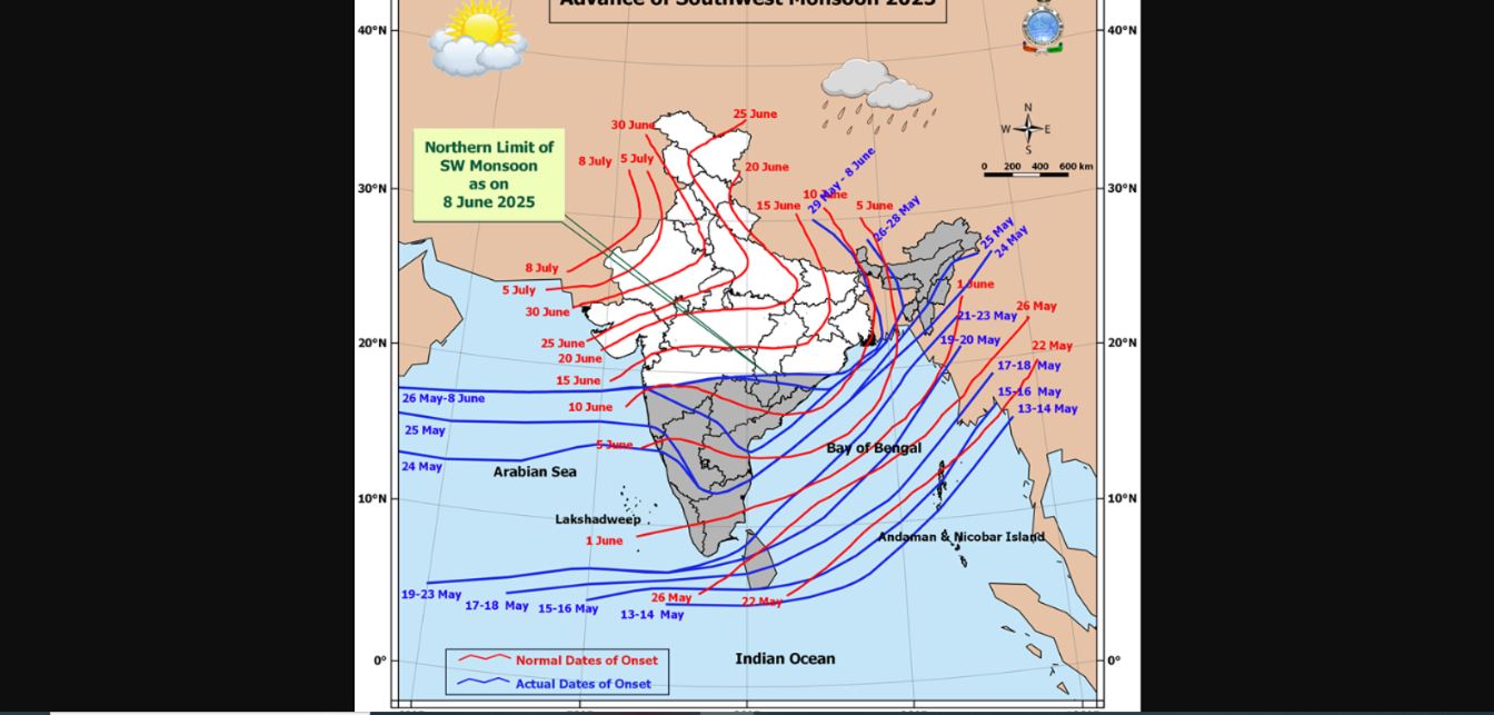 ભારતીય હવામાન વિભાગ (IMD) એ આગાહી કરી છે કે દક્ષિણ પશ્ચિમ ચોમાસું 12 થી 18 જૂન દરમિયાન મધ્ય અને પૂર્વ ભારતના વધુ ભાગોમાં આગળ વધશે. 29 મે થી અટકી ગયેલી પ્રગતિ, દેશના પશ્ચિમ અને ઉત્તરપશ્ચિમ ભાગોમાંથી સૂકી હવાને કારણે અટકી ગઈ છે.