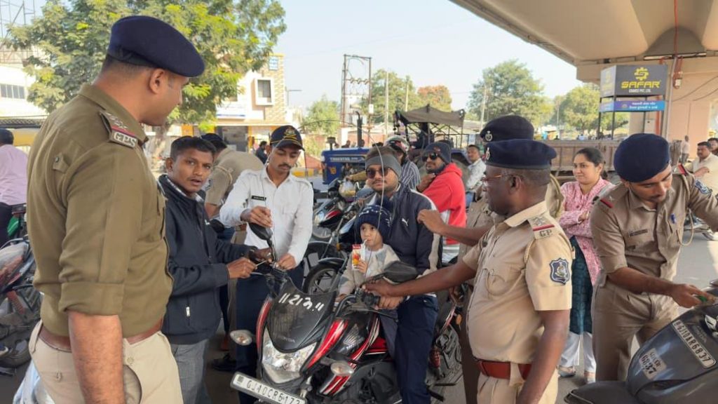 સામાન્ય રીતે ચાર રસ્તા કે ચોકડી પર પોલીસને જોઈને મોટાભાગના વાહન ચાલકો રસ્તો બદલી લે છે અથવા ત્યાંથી દૂર જવાનો પ્રયાસ કરે છે. પોલીસ એટલે દંડ અને કાર્યવાહી આવો ભય લોકોમાં રહેતો હોય છે. પરંતુ આજે જામનગર શહેરમાં એક અલગ જ દ્રશ્ય જોવા મળ્યું. અંબર ચોકડી વિસ્તારમાં જામનગર ટ્રાફિક પોલીસ દ્વારા કરવામાં આવેલી સરાહનીય કામગીરીને કારણે લોકો પોલીસથી દૂર ભાગ્યા નહીં, પરંતુ સ્વયં પોતાના વાહન લઈને ટ્રાફિક પોલીસ પાસે આવી રહ્યા હતા.