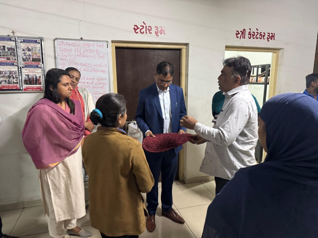 મુલાકાત દરમ્યાન મ્યુનિસિપલ કમિશનરએ ઘરવિહોણા લોકોને આશ્રયસ્થાન ખાતે આપવાની આવતી સુવિધા અંગે માહિતી મેળવી હતી તેમજ મ્યુનિસિપલ કમિશનરએ આશ્રિતો સાથે સંવાદ કરી વ્યવસ્થા અંગે માહિતી મેળવી હતી. શિયાળાની ઠંડીને ધ્યાનમાં રાખીને સ્પેશ્યલ ડ્રાઈવ કરી ઘરવિહોણા લોકોને આશ્રયસ્થાનમાં ખસેડવા મ્યુનિસિપલ કમિશનરએ સંબંધિત અધિકારીને સુચના આપી હતી.