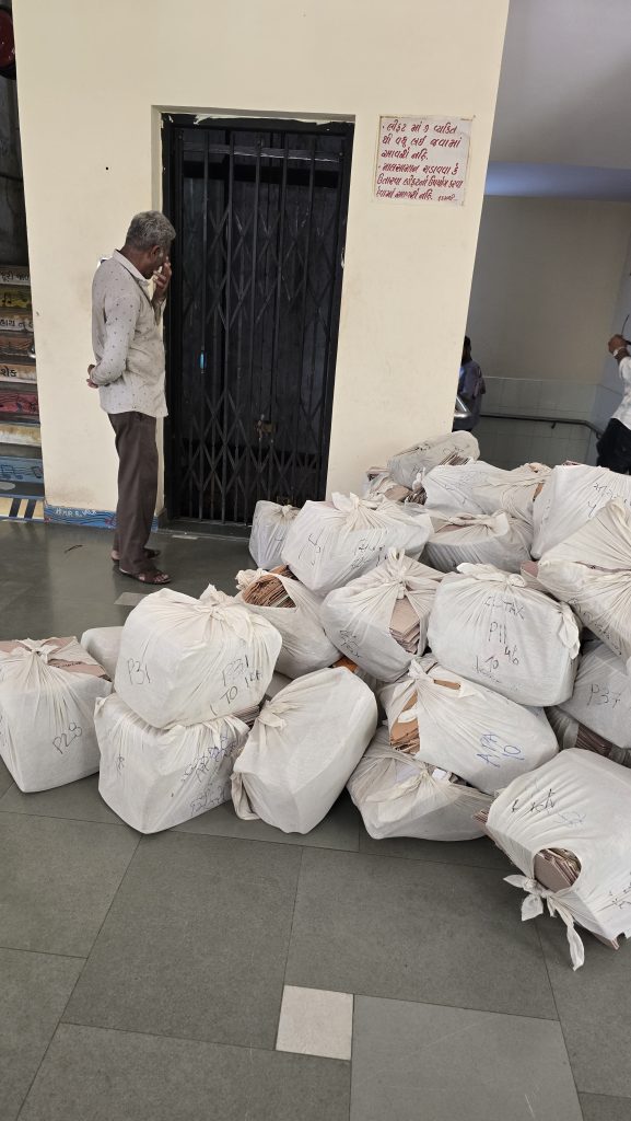 કોઈ અરજદાર પાસે સામાન હોય ત્યારે તેમને પગથિયા ચઢવા મજબુત કરાય છે. તેની સામે ખુદ તંત્ર દ્વારા સૌથી વધુ અરજદાર આવતા હોય તે દિવસે બુધવારના રોજ એક વિભાગના ચોપડાઓના પોટલાઓનો લીફ્ટની સામે ઢગલો કરી નિચે ઉતારવાનું કામ કરવામાં આવતું હતું. આ મુદ્દે અમુક પીયુને જણાવેલ કે, અમે દર વખતે પોટલા કે સામાન લીફ્ટ મારફતે ચઢાવવાનું કે ઉતારવાનું કામ કરીએ છીએ આથી સતત ટ્રાફિક હોવા છતાં તંત્રએ અરજદારોના બદલે પોટલા ઉતારી લીફ્ટમાં લગાવેલ બોર્ડના નિયમોનો ભંગ કર્યો હતો. છતાં કહેવાવાળુ કોઈ નથી તેમ અરજદારોએ મુંગા મોઢે બધુ સહન કર્યુ હતું.