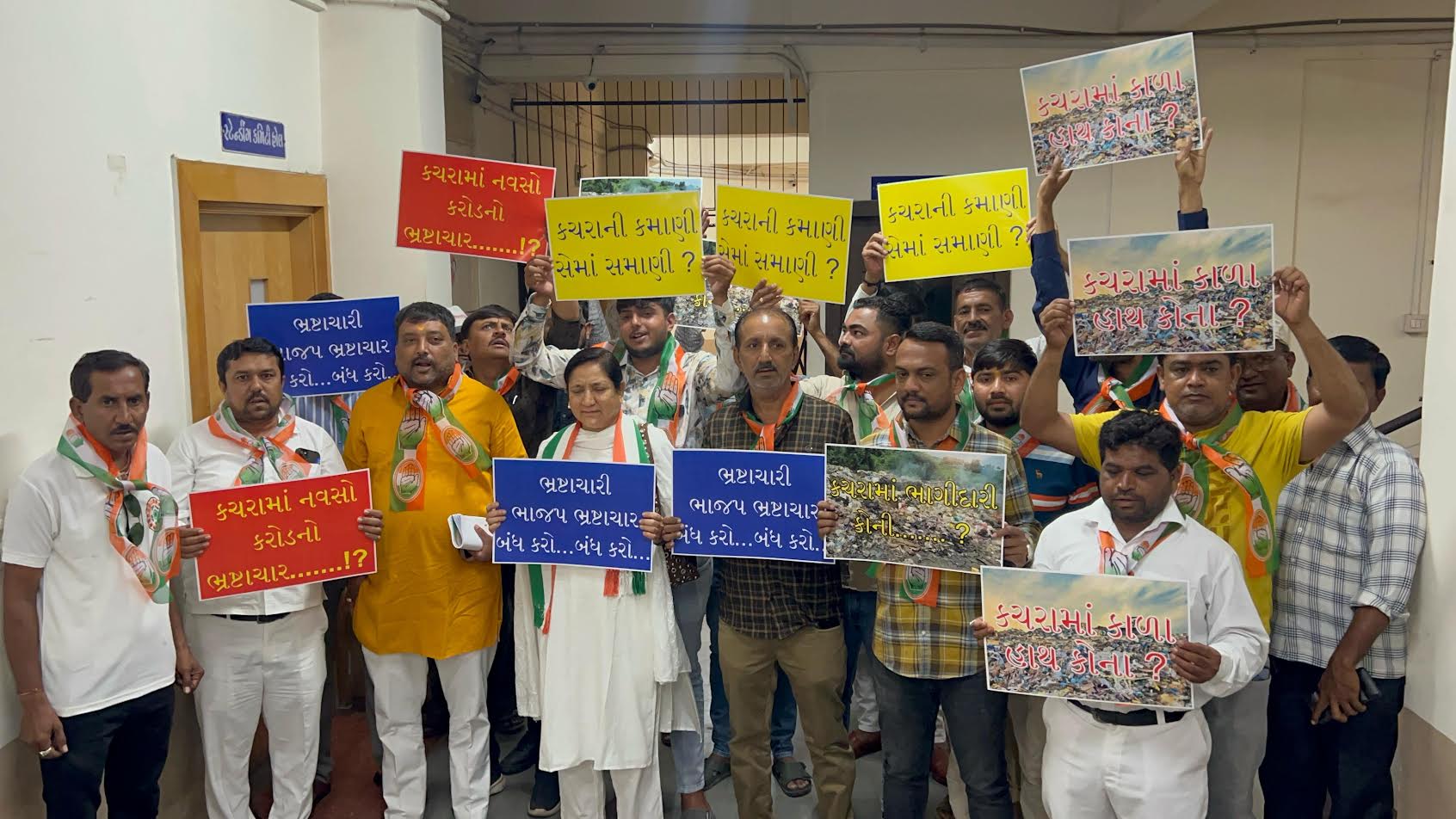કોંગ્રેસ પક્ષના કોર્પોરેટરો, આગેવાનો દ્વારા આ મામલે જામનગર મ્યુનિસિપલ કોર્પોરેશનમા સ્ટેન્ડિંગ કમીટી હોલ ના દરવાજે કમિશ્નર દિનેશ મોદીને ઘેરી લઈને દરખાસ્ત રોકવા અને કચરાના કોન્ટ્રાકટને લઈ ગંભીર આક્ષેપો કરવામાં આવ્યા છે.