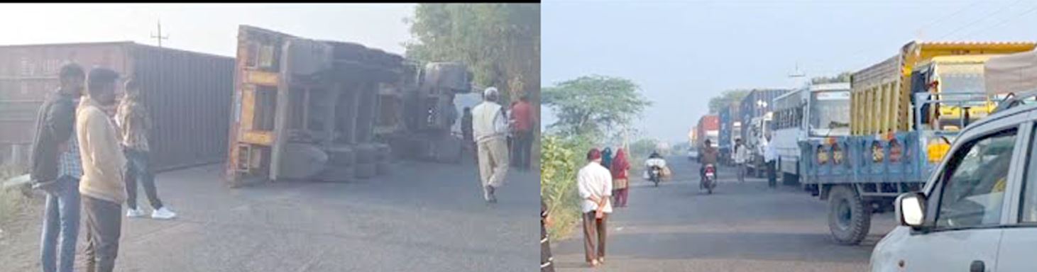તા.30-11-25નાં રોજ વહેલી સવારે 7:30 કલાકે રાજકોટ તરફથી લોખંડ ભરીને આવતો મહાકાલ ક્ધટેનર ટ્રક પલટી ખાઈ જતા નેશનલ હાઈવે રોડ બ્લોક થયો હતો તાત્કાલિક સાવરકુંડલા 112 પોલીસ ટીમ જય રોડ ને ખુલ્લો કરાવવા માટેની કાર્યવાહી હાથ ધરી હતી.