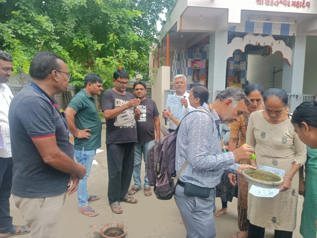 જેમાંથી 1,003 ઘરમાં પોરા જોવા મળતા તેનો નાશ કરવામાં આવેલ છે. તથા 689 ઘરમાં ઇન્ડોર ફોગીંગની કામગીરી કરવામાં આવેલ છે. 149 બિનરહેણાંક એકમોની તપાસ કરવામાં આવેલ છે તથા મચ્છર ઉત્પતિ સબબ 126 આસામીઓને નોટીસ આ5વામાં આવેલ છે. 26 વ્યકિતઓના લોહીના નમુના લેવામાં આવેલ છે. વોર્ડ નં. 2 માં 18139 ઘરની મુલાકાત લઇ 75196 પાત્રો ચકાસવામાં આવેલ છે. જેમાંથી 791 ઘરમાં પોરા જોવા મળતા તેનો નાશ કરવામાં આવેલ છે. તથા 405 ઘરમાં ઇન્ડોર ફોગીંગની કામગીરી કરવામાં આવેલ છે. 270 બિનરહેણાંક એકમોની તપાસ કરવામાં આવેલ છે તથા મચ્છર ઉત્પતિ સબબ 201 આસામીઓને નોટીસ આ5વામાં આવેલ છે. 132 વ્યકિતઓના લોહીના નમુના લેવામાં આવેલ છે.