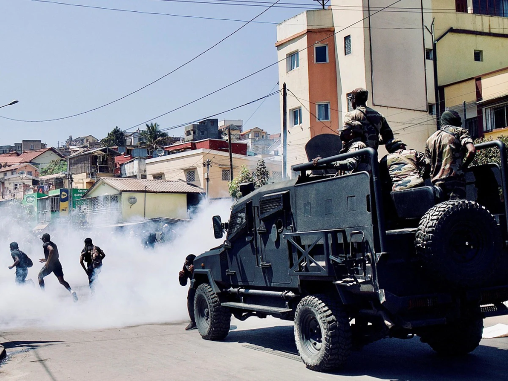 જોકે, કૂચ દરમિયાન, પોલીસે ભીડને વિખેરવા માટે ટીયર ગેસ અને રબરની ગોળીઓ ચલાવી, જેનાથી પરિસ્થિતિ વધુ વણસી. રાજધાનીમાં લૂંટફાટ વધી ગઈ, જેમાં સુપરમાર્કેટ, ઉપકરણ સ્ટોર્સ, બેંકો અને રાજકારણીઓના ઘરોને નિશાન બનાવવામાં આવ્યા. એન્ટાનાનારિવોમાં 1.4 મિલિયનની વસ્તી છે, પરંતુ રમખાણોએ સમગ્ર શહેરને અરાજકતામાં ડૂબાડી દીધું. ગયા અઠવાડિયાથી સાંજથી સવાર સુધી કર્ફ્યુ લાગુ કરવામાં આવ્યો છે, જેનો કડક અમલ સુરક્ષા દળો દ્વારા કરવામાં આવે છે.