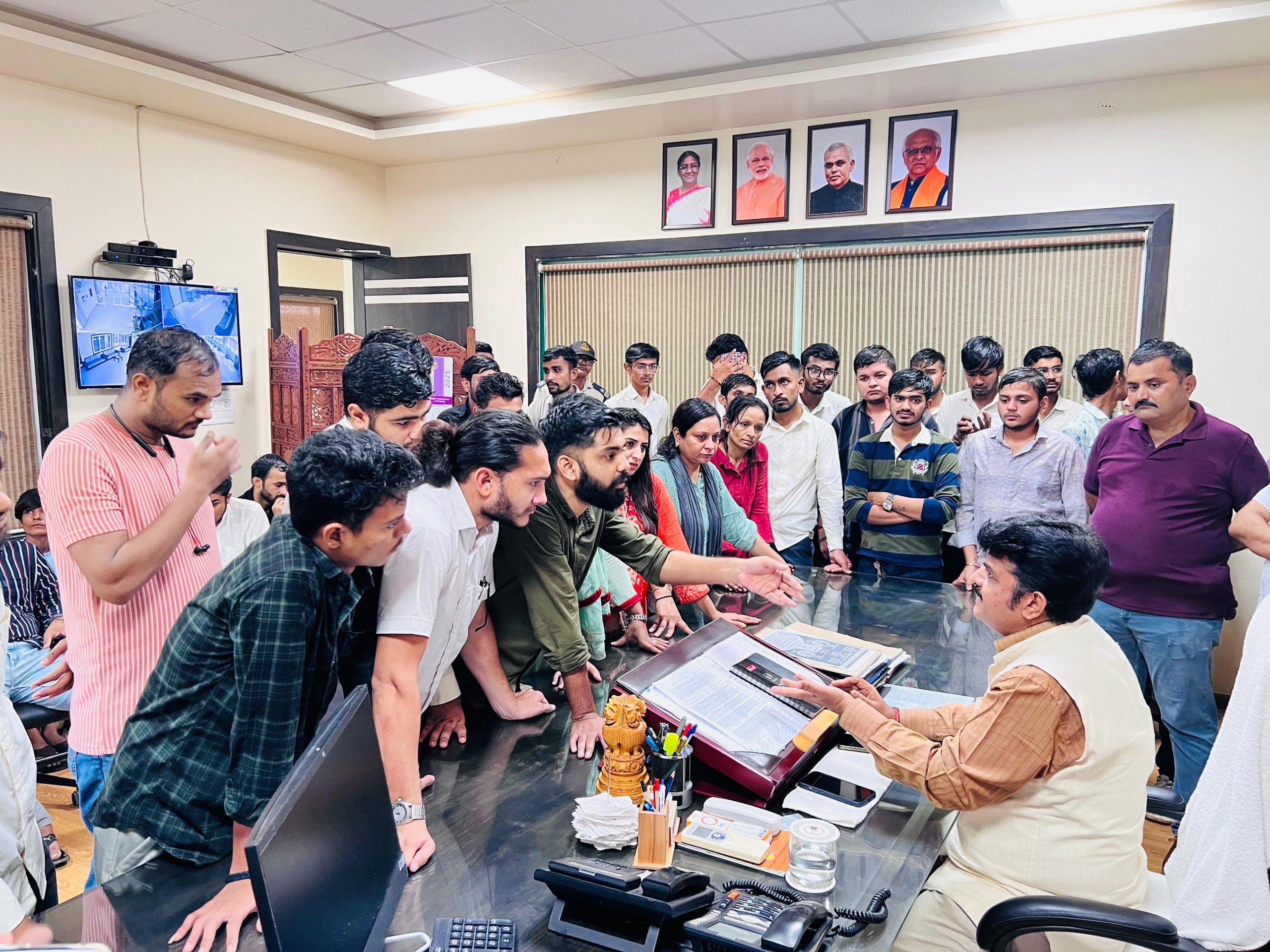 વહેલીતકે પરીક્ષા યોજવા માંગ: ઓફિસમાં જ રામધૂન-સૂત્રોચ્ચાર કરી વિરોધ પ્રદર્શન