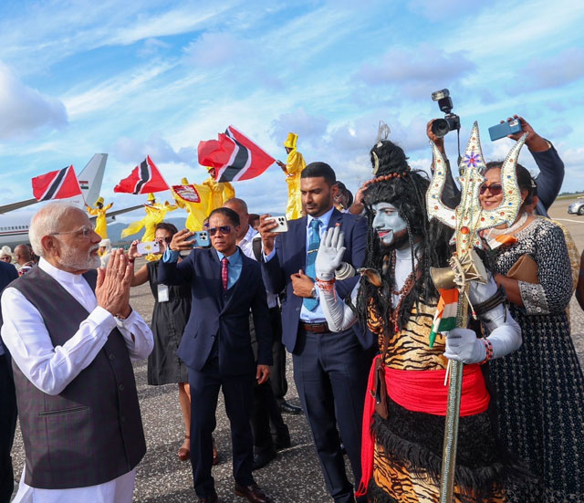 બુધવારે અહીં પિયાર્કો આંતરરાષ્ટ્રીય એરપોર્ટ પર વડા પ્રધાન નરેન્દ્ર મોદીનું આગમન ઈન્ડો-કેરેબિયન સંસ્કૃતિનો એક વાસ્તવિક ઉત્સવ બની ગયો કારણ કે ડાયસ્પોરાએ નૃત્ય, સંગીત અને પોશાકમાં તેમના ભારતીય વારસાનું પ્રદર્શન કર્યું. વડાપ્રધાને એ પછી ભારત કો જાને ફિલ્મના વિજેતાઓને મળ્યા હતા. તેમણે અયોધ્યા અને રામમંદિર તથા પ્રયાગરાજના મહાકુંભની વાતો કરી હતી.