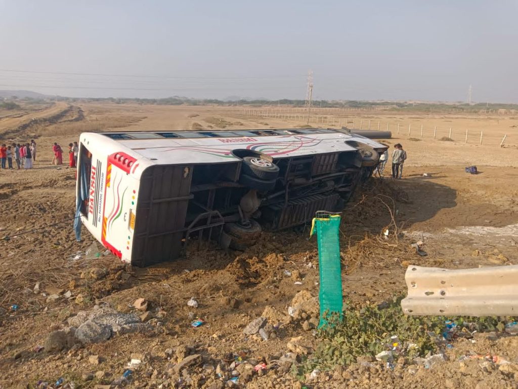 દ્વારકા નજીક ખાનગી બસ પલટી જતા દોઢ ડઝન મુસાફરો ઇજાગ્રસ્ત