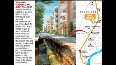 ONGC પાઇપલાઇન્સ જે જમીનમાંથી પસાર થાય છે તેના પર સલામતી માર્જિન અંગેના નવા આદેશથી જમીન માલિકો અને વિકાસકર્તાઓ મુશ્કેલીમાં મુકાયા છે. ઓઇલ કંપનીએ તાજેતરમાં તેના નિયમો ફરીથી બનાવ્યા છે જેમાં તેની ઓઇલ પાઇપલાઇન્સ અને કુવાઓની આસપાસના બફર ઝોનને અનુક્રમે 12 મીટરથી 30-45 મીટર સુધી વધારીને 15 મીટર અને 90 મીટર કરવામાં આવ્યા છે. આ ફેરફારથી અમદાવાદ શહેર અને આસપાસના વિસ્તારોમાં 10 લાખ ચોરસ મીટરથી વધુ વિસ્તાર પર વિકાસ યોજનાઓ બદલાઈ શકે છે, જેમાં વટવા, વસ્ત્રાલ અને નિકોલ જેવા પૂર્વીય વિસ્તારોમાં 300 હેક્ટર પર વિકાસ અટકી ગયો છે, જ્યાં નોંધપાત્ર સંખ્યામાં ONGC પાઇપલાઇન્સ છે.