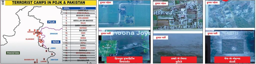 ભારતના ઈતિહાસમાં 1971 પછી પ્રથમ વખત મોટાપાયે લશ્કરી કવાયત હાથ ધરીને શરહદપાર હુમલો કરવામાં આવ્યો છે. ઓપરેશન સિંદુર અંતર્ગત ભારતની ભૂમિ પરથી પાકિસ્તાનમાં આતંકવાદીઓના ટ્રેનીંગ સેન્ટર, હાઈડઆઉટ અને આતંકીના આકાઓ પર વજ્રપ્રહાર કરવામાં આવ્યો છે. રાત્રે 1 કલાક અને 4 મીનીટે હાથ ધરાયેલ ઓપરેશનમાં ભારત દ્વારા પાકિસ્તાન અને પીઓકેમાં 9 જેટલા આતંકી અડ્ડાઓ પર મિસાઈલો અને બોમ્બ વર્ષાવવામાં આવ્યા હતાં. અત્યંત સટીક નિશાન સાથે જૈશ-એ-મહમદના ચાર, લશ્કર-એ-તોઈબાના 3 અને હિઝબુલ મુજાહીદ્દીનના બે કેમ્પો પર ભારતીય ફાઈટરોએ ઉડાવી દીધા હતાં.