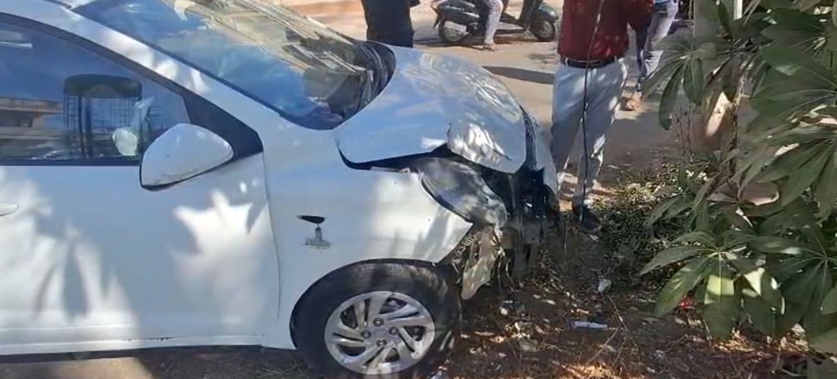 4 વાહન ઉલાળી બેકાબૂ કાર થાંભલામાં ઘૂસી ગઇ