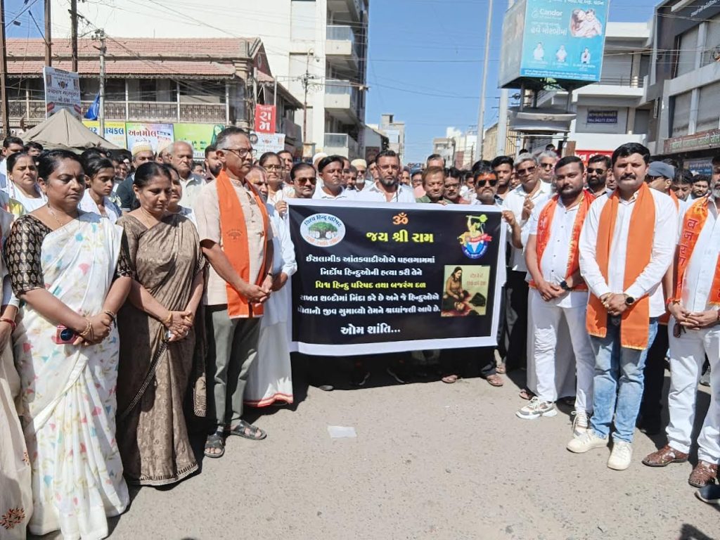 ઉલ્લેખીએ છે કે, જમ્મુના પહેલગામમાં જે હુમલો કરવામાં આવ્યો ત્યાં હુમલો કરવા માટે આવેલ આતંકવાદીઓ દ્વારા પ્રવાસીઓનો ધર્મ પૂછીને ગોળીઓ મારવામાં આવી હતી જેથી કરીને મોરબીના હિન્દુ વેપારીઓમાં ભારોભાર આક્રોશની લાગણી જોવા મળી રહી છે એટ્લે જ તો વેપારીઓની દુકાનોની બહારના ભાગમાં વિહિપ અને બજરંગદળ દ્વારા પોસ્ટર લગાવવામાં આવ્યા છે અને અને તેમાં લખ્યું છે કે, ધર્મ જોઈને સમાન ખરીદો, આ હિન્દુની દુકાન છે આમ જો લોકોને તેનો ધર્મ પૂછીને ગોળી મરવામાં આવતી હોય તો સનાતની હિન્દુઓને પણ હવે મોરબી સહિત દેશભરમાં જાગવાનો સમય પાકી ગયો છે ત્યારે માત્ર હિન્દુઓની દુકાનોએથી જ માલ સામાનની ખરીદી કરવામાં આવશે તેવી શપથ પણ લોકોએ મોરબીમાં લીધેલ હતી.
