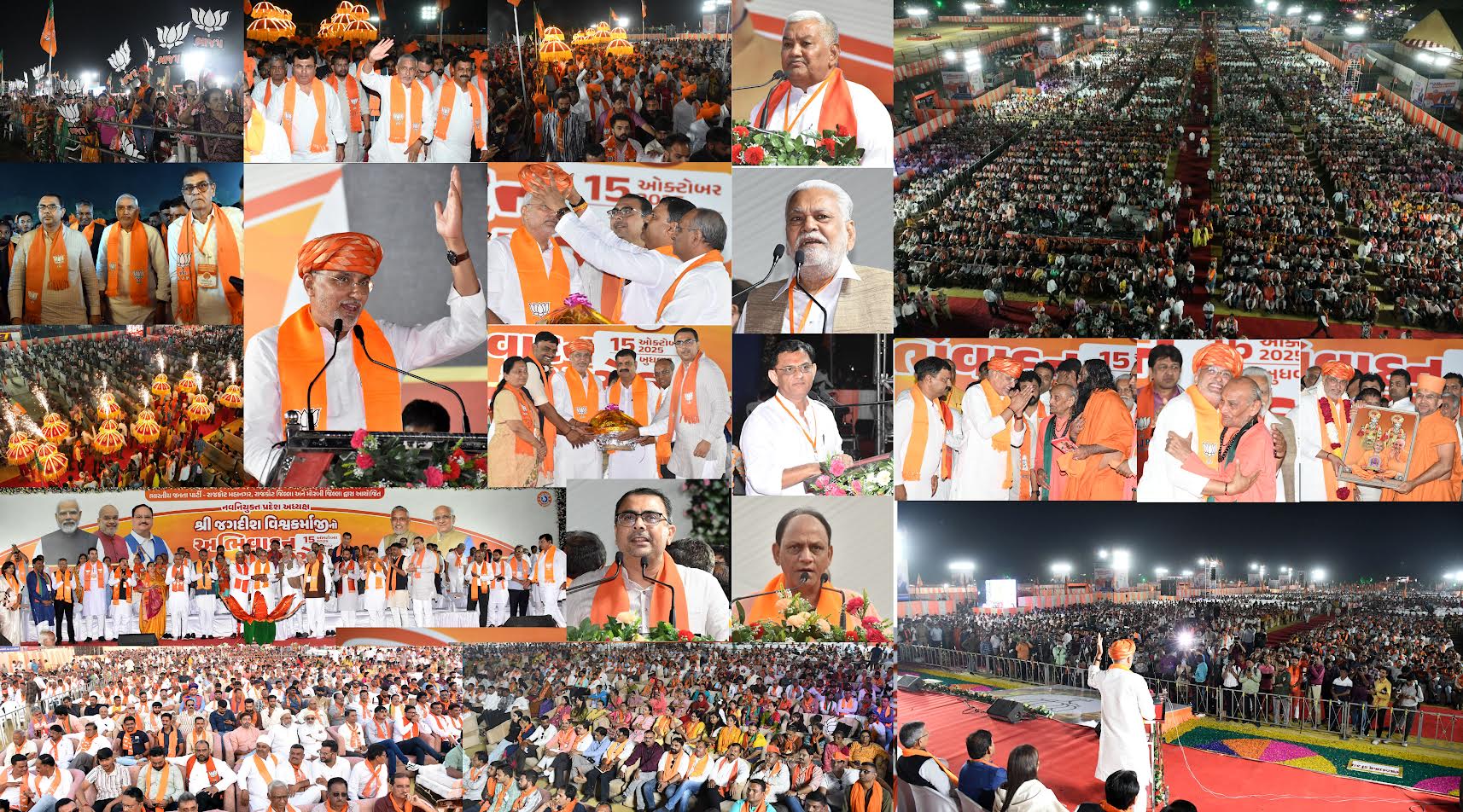 આ કાર્યક્રમના પ્રારંભે નવનિયુકત પ્રદેશ અધ્યક્ષ જગદીશભાઈ વિશ્વકર્માજી વિશાળ સંખ્યામાં ઉપસ્થિતિ જનમેદની વચ્ચેથી પગપાળા આવીને સ્ટેજ ઉપર બિરાજમાન થયા હતાં અને સૌ કાર્યકર્તાઓનું અભિવાદન જીલ્યું હતુ, ત્યારબાર દિપપ્રાગટય કાર્યક્રમ ખુલ્લો મુકયો હતો. આ પ્રાસંગિક ઉદબોધન આપતાં પૂર્વ પ્રદેશ અધ્યક્ષ આર.સી. ફળદુ અને રાજકોટ લોકસભા સાંસદ અને પૂર્વ પ્રદેશ અધ્યક્ષ પરશોતમભાઈ રૂૂપાલાએ વિશાળ સંખ્યામાં ઉપસ્થિત સૌ કાર્યકર્તાઓનો આભાર વ્યકત કર્યો હતો. પ્રાસંગિક ઉદબોધન કરતાં નવનિયુકત પ્રદેશ અધ્યક્ષ જગદીશભાઈ વિશ્વકર્માએ આટલી મોટી વિશાળ સંખ્યામાં કાર્યકર્તા ઉપસ્થિત રહીને સમગ્ર દેશમાં રાજકોટનો વટ પાડી દીધો છે, રાજકોટ શહેર જનસંઘથી લઈ ભારતીય જનતા પાર્ટીનો હંમેશા ગઢ રહ્યો છે પક્ષના દિગ્ગજ નેતા સ્વ. અટલબિહારી બાજપાઈથી લઈ વડાપ્રધાન નરેન્દ્રભાઈ મોદી રાજકોટના શહેરીજનો અને પક્ષના કાર્યકર્તાઓને મળવા હરહંમેશ ઉત્સુક હોય છે જેમાં હું પણ છું.