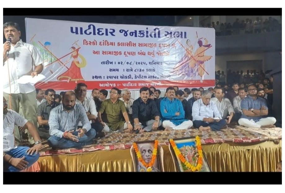 મોરબીમાં છેલ્લા કેટલાક દિવસોથી દાંડિયા ક્લાસીસ નો વિરોધ ઉઠી રહ્યો છે અને ખાસ કરીને નવરાત્રિના ત્રણ ત્રણ મહિના અગાઉ ચાલતા આવા દાંડિયા ક્લાસીસમાં દીકરીઓને ભોળવીને અમુક તત્વો ખોટા રસ્તે લઈ જાય છે.જેથી તમામ દાંડિયા ક્લાસિસ નામના દૂષણો ને બંધ કરાવવા માટે પાટીદાર સમાજ દ્વારા એક ઝુંબેશ શરૂૂ કરવામાં આવી છે અને આ ઝુંબેશના ભાગરૂૂપે મોરબીમાં પાટીદાર સમાજની જન ક્રાંતિ સભા યોજાઈ હતી જેમાં પાટીદાર સમાજના આગેવાનો ઉદ્યોગપતિઓ અને તમામ પક્ષના રાજકીય નેતાઓને આગેવાનો જોડાયા હતા અને આ સાથે જ હજારોની સંખ્યામાં પાટીદારોની જનમેદની ઉમટી પડી હતી.