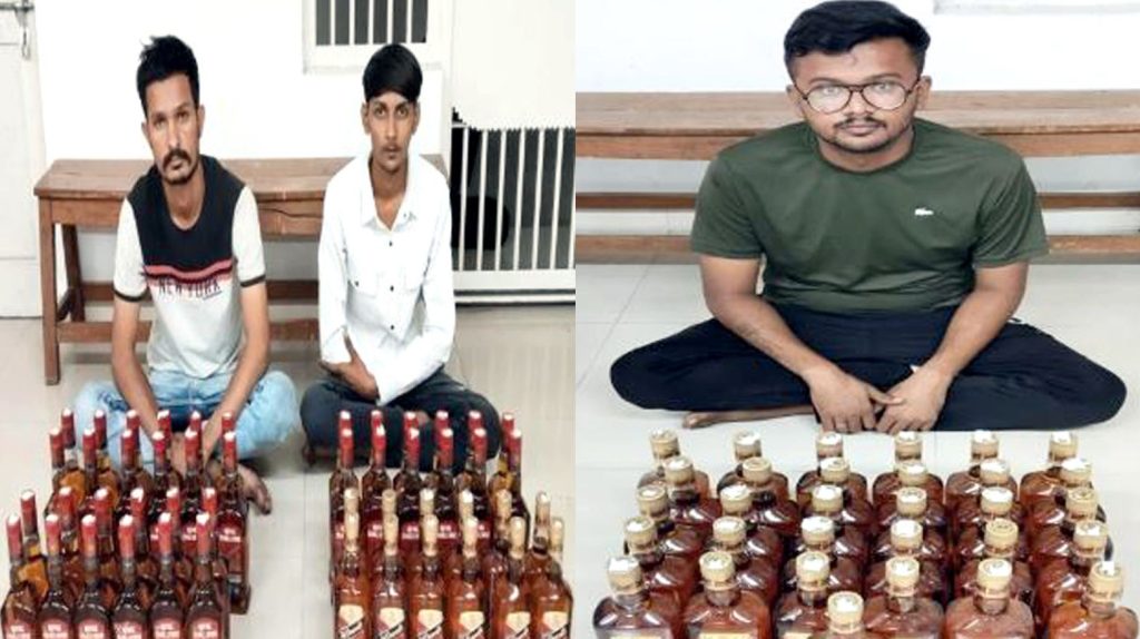જયારે 1પ0 ફુટ રીંગ રોડ પર ટવીન્સ ટાવર પાસે નહેરૂનગર તરફ જવાના રસ્તે સેન્ટ્રો કાર નં જીજે 3 કેએચ 3135 માંથી રૂ. 29496 ની કિંમતની 48 બોટલ દારૂ સાથે યુનિવર્સિટી રોડ પર કેવલ કવાર્ટસ બી/37 માં રહેતા મહીપાલસિંહ મહેન્દ્રસિંહ જાડેજા અને નહેરૂનગર શેરી નં 4 માલધારી ચોક, બાલાજી હોલ પાસે, નાના મૌવાના શીવાંગ ધર્મેશ સોલંકીની ધરપકડ કરી રૂ. 1.79 લાખનો મુદામાલ કબજે કર્યો છે.પીસીબીની ટીમે રૈયા ધાર ધરમનગર આવાસ યોજના કવાર્ટર પાછળ મફતીયાપરામાંથી દરોડો પાડી 12000 નો દેશી દારૂ બનાવવાનો 600 લીટર આથો તથા 1ર લીટર દેશી દારૂ મળી 14000 ના મુદામાલ સાથે રૈયાધાર ધરમનગર આવાસ યોજના પાસે રહેતી વસંતબેન પ્રવિણભાઇ સાડમીયાની ધરપકડ કરી હતી.