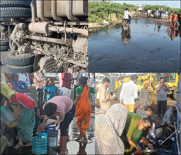 આ ટેન્કરમા 22 ટન સીંગતેલ હતુ અને લાખો રૂૂપિયાની નુકસાની થઈ હતી બોરાણા રોડના વીર શહીદ માણશી સર્કલ પર તેલની નદી વહી નીકળી હતી અને લોકો દિલથી તેલ ભરી લઈ જતા જોવા મળ્યા હતા.