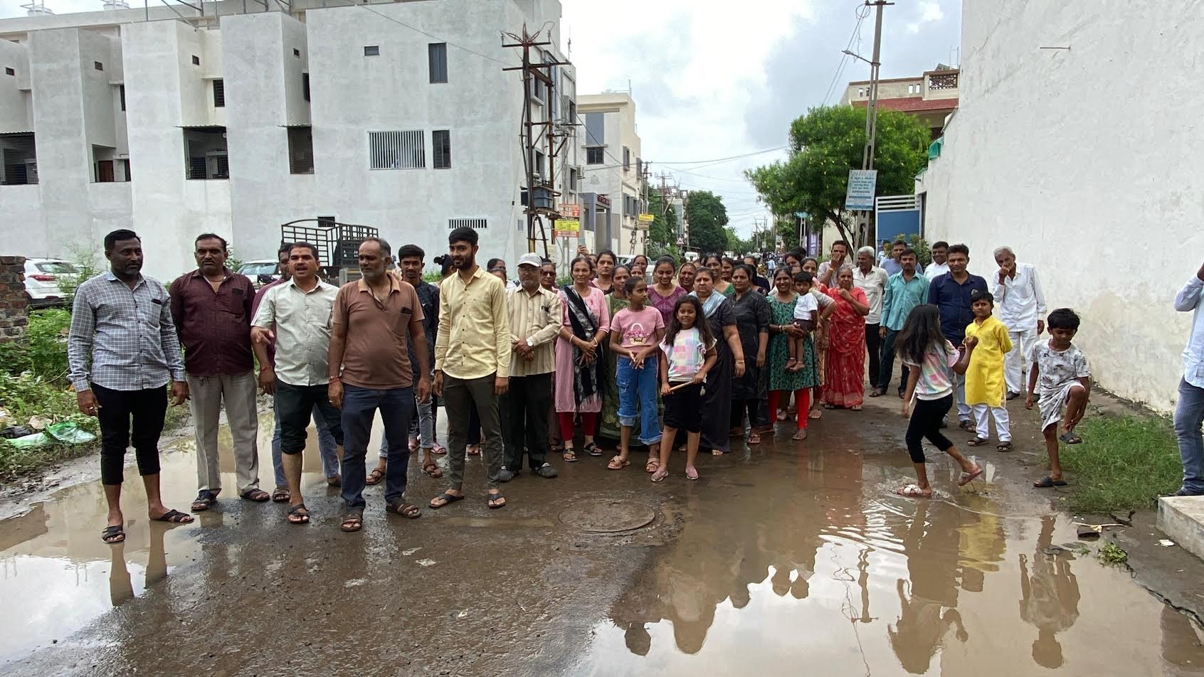 શહેરના મોરબી રોડ પર આવેલા વોર્ડ નંબર 4 માં ઇન્દ્રપ્રસ્થ, રાધે સોસાયટી નં. 1 અને 2, અને ઉમા પાર્ક સહિતની સોસાયટીઓના સ્થાનિક લોકો આજે તૂટેલી ડ્રેનેજ લાઈન અને ગંદા પાણીની સમસ્યાથી કંટાળીને રસ્તા પર ઉતરી આવ્યા હતા અને ચક્કાજામ કર્યો હતો. સ્થાનિકોએ આક્ષેપ કર્યો છે કે, છેલ્લા એક વર્ષથી વારંવાર રજૂઆત કરવા છતાં તંત્ર દ્વારા કોઈ કાર્યવાહી કરવામાં આવી નથી.ડ્રેનેજ લાઈન લીક થવાને કારણે તેમના નળમાં પણ ગંદુ પાણી આવી રહ્યું છે અને રસ્તા પર ખાડા પડી પાણી ભરાઈ રહ્યા છે.