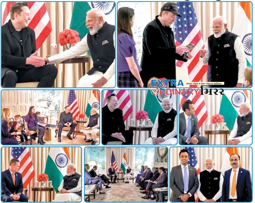 અમેરિકાના પ્રવાસ દરમિયાન વડાપ્રધાન મોદી અમેરિકાના પ્રમુખ ડોનાલન્ડ ટ્રમ્પ સહિત અમેરિકી સરકારના ટોચના લોકોને વન ટુ વન મળ્યા હતાં તેની તસવીરી ઝાંખીમાં વોશિંગ્ટનમાં એલોન મસ્ક, વિવેક રામાસ્વામી સાથેની મુલાકાત જોવા મળી છે. આ મુલાકાત દરમિયાન મસ્કના બાળકો પણ સાથે જોવા મળ્યા હતાં. રામાસ્વામી સાથે પણ મુલાકાત યોજી હતી.