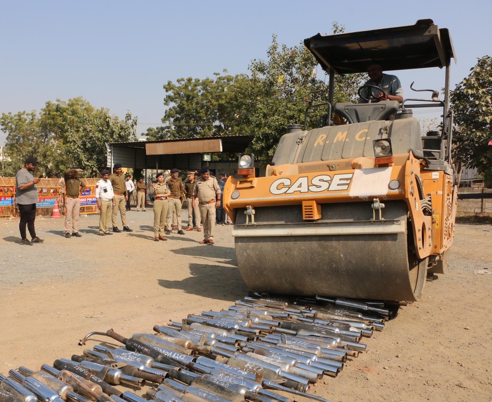 શહેર ટ્રાફિક પોલીસે છેલ્લા ઘણા સમયથી અવાજ કરતા સાયલેન્સર વાળા મોડીફાઈવ બુલેટ સામે ઝુંબેશ શરૂ કરી આવા મોડીફાઈવ સાયલેન્સર વાળા બુલેટના સાયલેન્સરને કબ્જે કર્યા હતાં. છેલ્લા એક મહિનાથી ચાલતી આ ઝુંબેશમાં ટ્રાફિક પોલીસે કબ્જે કરેલા આવા 350 ઘોંઘાટિયા સાયલેન્સર ઉપર આજે ટ્રાફિક પોલીસે રોલર ફેરવી દીધું હતું. ટ્રાફિકના એસીપી જે.બી. ગઢવી અને તેમની ટીમે શિતલ પાર્ક ટોંઈગ સ્ટેશન ખાતે કબ્જે કરેલા 350 બુલેટના મોડીફાઈવ સાયલેન્સર ઉપર રોલર ફેરવી સાયલેન્સરનો નાશ કર્યો હતો.