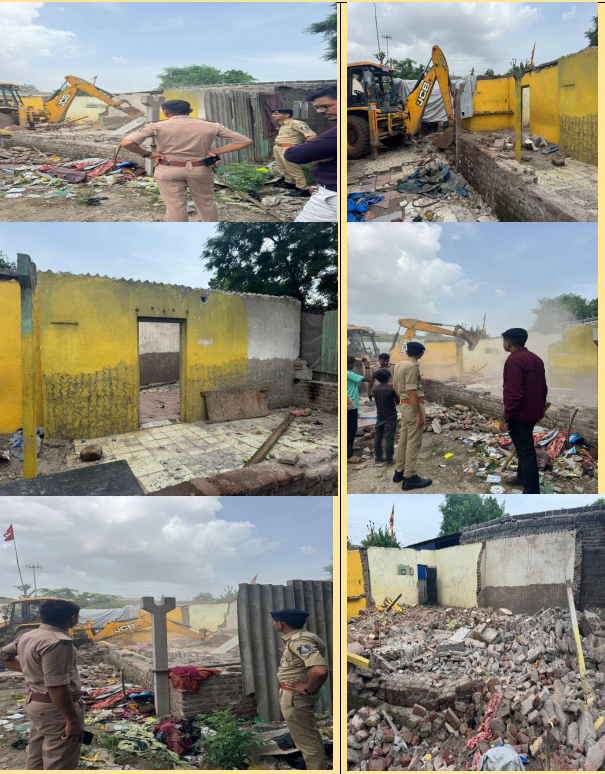 રાજકોટ પોલીસે ગુનેગારો અને અસામાજિક તત્વોની યાદી તૈયાર કરી હોય. જેમાં શહેરના 740 જેટલા ગુનેગારોના ગેરકાયદેસર મકાન અને મિલકત અંગે મહાનગરપાલિકા અને પીજીવીસીએલ દ્વારા તેમના ગેરકાયદે વીજ કનેક્શન અંગે સર્વે કર્યા બાદ લિસ્ટેડ અસામાજિક તત્વોના મકાનો પર બુલડોઝર ફેરવી દીધા હતા. આ ઝૂંબેશ દરમિયાન પ્ર. નગર પોલીસ સ્ટેશનના પીઆઇ વી.આર.વસાવા અને તેમની ટીમે નામચીન મહિલા બુટલેગર પોપટપરા સેન્ટ્રલ જેલ પાસે રહેતી ગોદાવરીબેન કનકભાઈ દેત્રોજાની મિલ્કતના ડિમોલિશન માટે પોપટપરા સેન્ટ્રલ જેલ પાસેના વિસ્તારમાં પહોંચતા લોકોના ટોળાં એકઠા થયા હતા. પોલીસ કમિશ્નર બ્રજેશ કુમાર ઝા,અધિક પોલીસ કમિશ્નર મહેન્દ્ર બગડિયા,ડીસીપી ઝોન-2 જગદીશ બાંગરવા અન એસીપી રાધિકા ભારાઇમાં માર્ગદર્શન હેઠળ પ્ર.નગર પોલીસ મથકના પી.આઈ વી.આર.વસવા અને તેમની ટીમે કાર્યવાહી કરી હતી.