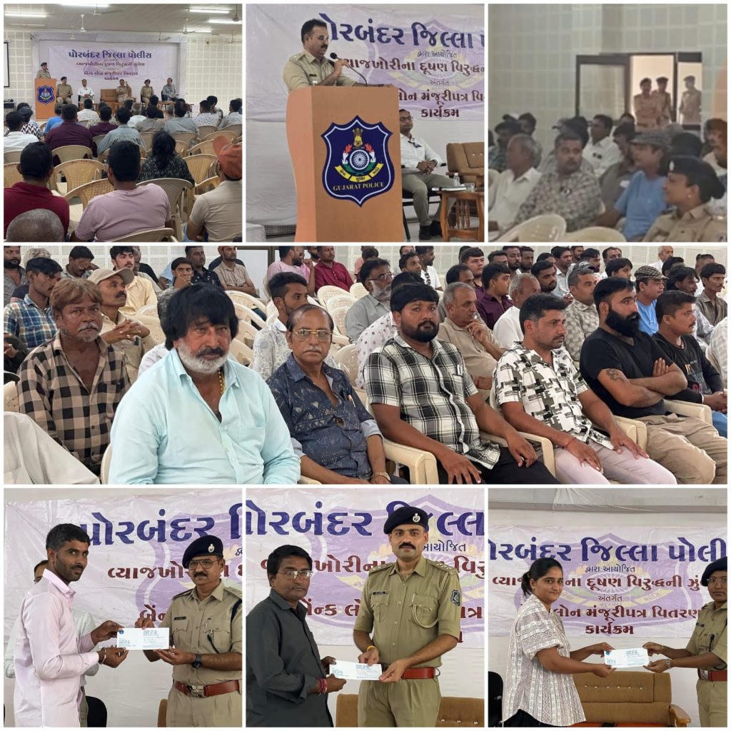 પોરબંદર જીલ્લા પોલીસ અધિક્ષક ભગીરથસિંહ જાડેજા ના અધ્યક્ષ સ્થાને ગઈ તા. 21/07/ 2025 ના રોજ પોલીસ હેડ કવાર્ટર ખાતે વ્યાજખોરોને સામે આગળ આવી ફરિયાદ સાંભળવા પોલીસ દ્વારા ખાસ લોક દરબારનું આયોજન કરવામાં આવ્યું હતું.