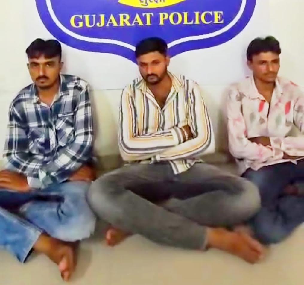 જેમાં (1) કિશન મુળુ ગુરગટીયા, ઉ.વ. 26 ધંધો, મજુરી રહે. જુનાગઢ, પંચેશ્ર્વર વિસ્તાર (2) રાજુ ડાયા સિંધલ, ઉ.વ. 25, ધંધો, મજુરી રહે. જુનાગઢ, પંચેશ્ર્વર વિસ્તાર, આવડ માતાના મંદિરની પાછળ (3) મેરામણ ઉર્ફે ભુરો ડાયા સિંધલ, રબારી, ઉ.વ. 23, ધંધો, મજુરી રહે. જુનાગઢ, પંચેશ્ર્વર વિસ્તાર, આવડ માતાના મંદિરની પાછળ