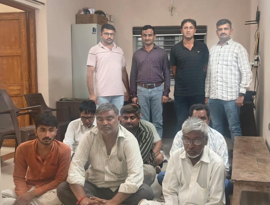 આ સમગ્ર પ્રકરણ અંગે પોલીસ સૂત્રો દ્વારા જાહેર કરવામાં આવેલી વિગત મુજબ દેવભૂમિ દ્વારકા જિલ્લા ડીવાયએસપી વી.પી. માનસસેતાના માર્ગદર્શન હેઠળ ખંભાળિયા પોલીસ મથકના પી.આઈ. બી.જે. સરવૈયા તેમજ તેમની ટીમ દ્વારા દારૂૂ, જુગારની પ્રવૃત્તિ સામે હાથ ધરવામાં આવેલી કાર્યવાહી અંતર્ગત ખંભાળિયાના વડત્રા આઉટ પોસ્ટ વિસ્તારમાં સોમવારે સાંજે પોલીસ સ્ટાફ દ્વારા હાથ ધરવામાં આવેલા પેટ્રોલિંગ દરમિયાન હેડ કોન્સ્ટેબલ વિરેન્દ્રસિંહ નટુભા જાડેજા, એ.એસ.આઈ. હેમતભાઈ નંદાણીયા તથા કોન્સ્ટેબલ યોગરાજસિંહ ઝાલાને મળેલી ચોક્કસ બાતમીના આધારે ખંભાળિયાથી આશરે 20 કિલોમીટર દૂર ખજુરીયા ગામની ઓરીયા વાડી વિસ્તારમાં એક આસામીની વાડી પાસેના સરકારી ખરાબામાં ખંભાળિયાના સોનલનગર વિસ્તારમાં રહેતા આલા ફોગા કારીયા નામના શખ્સ દ્વારા બહારથી માણસો બોલાવીને સાથે મળીને ગંજીપાના વડે તીનપત્તી નામનો જુગાર રમી રહેલા કાસમ હારુન ગજીયા, ખેંગાર પુના પતાણી, દાઉદ સીદીક ઘાવડા, ભરત તુલસીદાસ દતાણી, લધુ માંડણ મુન, વિનોદ કુરજી વિઠલાણી અને રાણા આશા સંધીયા નામના સાત શખ્સોને પોલીસે દબોચી લીધા હતા.