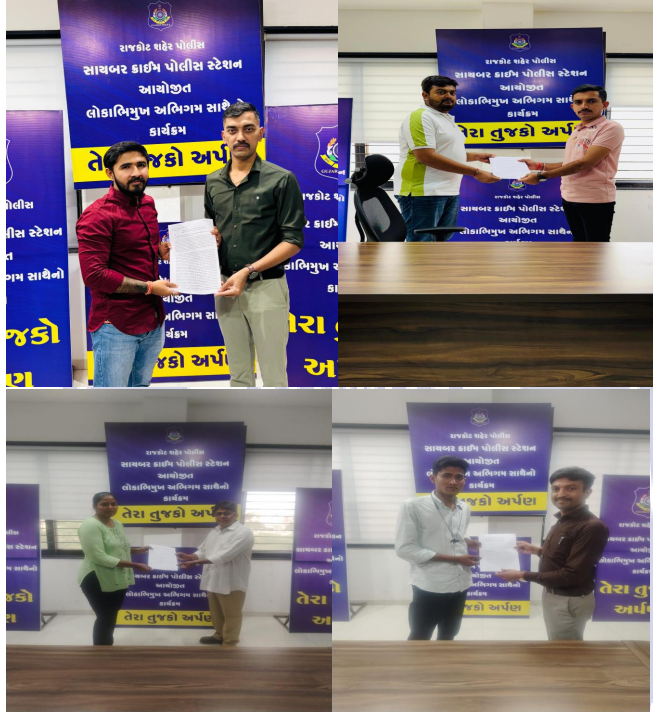 રાજયનાં નાગરીકોની સલામતી અને તેમની સુવીધાઓને કેન્દ્રમા રાખીને ગુજરાત પોલીસે શરુ કરેલી તેરા તુજકો અર્પણની પહેલ રાજય ભરમા સારા પરીણામ આપી રહી છે.તેરા તુજકો અર્પણ કાર્યક્રમ અંતર્ગત રાજકોટ શહેર પોલીસ કમિશનર બ્રજેશ ઝાના માર્ગદર્શન હેઠળ ફ્રોડ કે ચોરીમાં ગયેલો મુદ્દામાલ હવે પોલીસ તેરા તુજકો અર્પણ નામના રૂૂપકડા નામ હેઠળ અરજદારોને પરત આપે છે. જે અંતર્ગત સાયબર ક્રાઈમ પોલીસે ગત ઓગસ્ટ માસમાં સાયબર ફ્રોડમાં ગુમાવેલા 24.15 લાખ અરજદારોને પરત અપાવ્યા હતા.