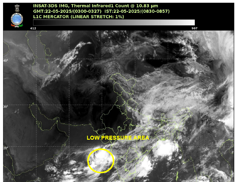 હવામાન વિભાગ અનુસાર, પૂર્વ-મધ્ય અરબી સમુદ્ર પર, ઉત્તર કર્ણાટક-ગોવાના દરિયાકાંઠે અપર એર સાઇક્લોનિક સર્ક્યુલેશન આજે સવારે એટલે કે 22 મે 2025ના રોજ સક્રિય થયું છે અને આગામી 36 કલાકમાં આ લોઅર પ્રેશર એરિયા ડિપ્રેશનમાં પરિવર્તિત થવાની પ્રબળ શક્યતા છે. લો પ્રેશર એરિયામાં પરિવર્તિત થયા બાદ આગામી 36 કલાકમાં તે ઉત્તર દિશામાં ગુજરાત તરફ આગળ વધશે અને ડીપ ડિપ્રેશન અથવા સાયકલોનીક સ્ટોર્મમાં પરિવર્તિત થઇ શકે છે. જેના પગલે વાવાઝોડું આવવાની શક્યતા જણાઇ રહી છે.