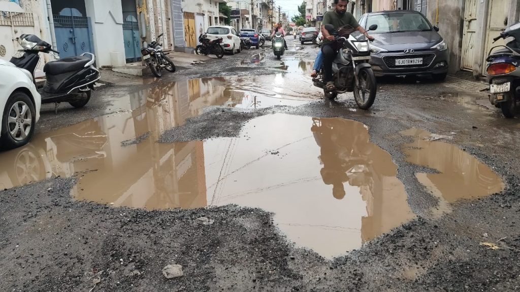 હજુ અઠવાડીયા પહેલા જ શહેરનાં 150 ફૂટ રિંગ રોડ ઉપર બાલાજી હોલ વાળા રોડ પર પડેલા મસ મોટા ગાબડાથી ત્રસ્ત લોકોએ રસ્તા વચ્ચે ખાડામા સુઇને વિરોધ નોંધાવ્યા બાદ રાતો રાત મહાનગર પાલિકાએ ગાબડા બુરી દીધા હતા પરંતુ ગઇકાલે પડેલા એક ઇંચ જેવા સામાન્ય વરસાદમા પણ મહાનગર પાલિકાની પોલ ખુલી ગઇ હતી અને અગાઉ હતા તેનાથી મોટા ખાડા રોડ ચીરીને બહાર આવ્યા છે . બાલાજી હોલથી ધોળકીયા સ્કૂલવાળા રોડ તેમજ રાદીપ સોસાયટી સહિતનાં વિસ્તારોમા ફરી હતી તે જ સમસ્યા ઉભી થઇ છે. લોકો ફરી ઉબડ – ખાબડ રોડ પરથી પસાર થવા મજબુર બન્યા છે.