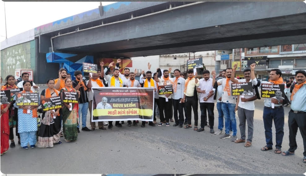 મોરબીના ભક્તિનગર સર્કલ ખાતે મોટી સંખ્યામાં ભાજપના હોદ્દેદારો અને કાર્યકરો એકઠા થયા હતા. કાર્યકરોએ હાથમાં બેનરો લઈને કોંગ્રેસ વિરુદ્ધ સૂત્રોચ્ચાર કર્યા હતા. આ બેનરોમાં “ગુજરાત વિરોધી માનસિકતા હવે નહીં ચાલે”, “અમે ગુજરાતીઓ મૂર્ખ નથી” અને “માફી માંગે કોંગ્રેસ” જેવા લખાણો સાથે વિરોધ નોંધાવ્યો હતો. આ ઉપરાંત ભાજપના કાર્યકરોએ કોંગ્રેસ અને મલ્લિકાર્જુન ખડગે હાય હાયના નારા પણ લગાવ્યા હતા.