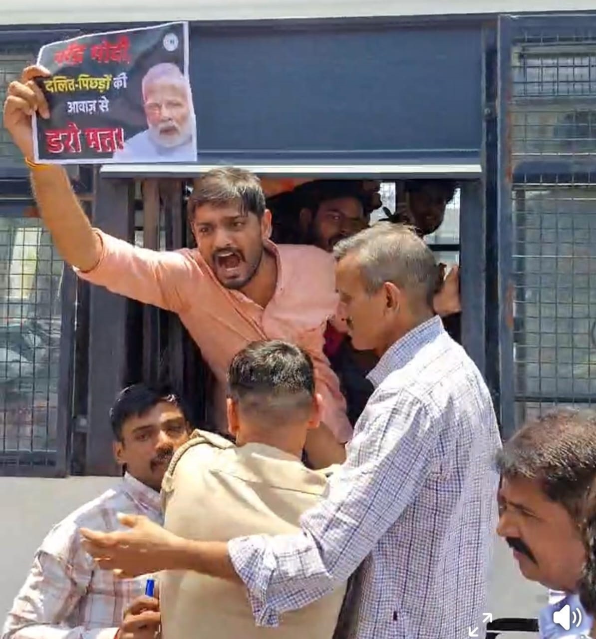તાજેતરમાં બિહારમાં જ્યારે રાહુલ ગાંધી દલિત વિધાર્થીઓના દુ:ખમાં સહભાગી થવા જઈ રહ્યા હોય ત્યારે બીજેપી જેડીયુ અને આરએસએસ ની સરકાર દ્વારા રાહુલ ગાંધીજીને વિદ્યાર્થીઓના દુ:ખમાં સહભાગી થવા જવા નથી દેવામાં આવતા અને રાહુલ ગાંધીજી ઉપર ગેરકાયદેસર રીતે ફરિયાદ કરવામાં આવે છે આ ફરિયાદ રાહુલ ગાંધીજી ઉપર નહીં પરંતુ દલિત વિધાર્થીઓ ઉપર થઈ હોય એવું અમને લાગી રહ્યું છે ત્યારે આજે રાજકોટ એનએસયુઆઈ કોટેચા ચોક ખાતે દ્વારા વિરોધ પ્રદર્શન કરવામાં આવ્યું હતુ. થોડીવારમા જ વિરોધ પ્રદર્શન કરી રહેલા તમામને ડીટેઇન કરીને પોલીસ હેડ કવાર્ટર, રેસકોર્ષ ખાતે લઇ જવાયા હતા .