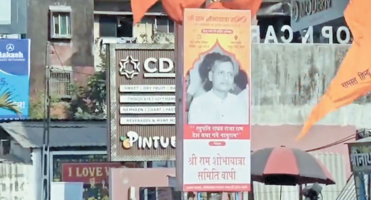 સુરતના પારડી મત વિસ્તારમાં રાષ્ટ્રપિતા મહાત્મા ગાંધીના હત્યારા નથુરામ ગોડસેના બેનર લાગતા ખળભળાટ મચી ગયો છે. ગઇકાલે રામનવમી હતી. વાપીમાં શ્રીરામ શોભાયાત્રા સમિતિ દ્વારા ગોડસેના વખાણ કરતા હોર્ડીંગ મારવામાં આવ્યા હતા. આ હોર્ડીંગમાં નીચે ‘રઘુપતિ રાઘવ રાજા રામ દેશ બચા ગયે નાથુરામ’ એવું લખાણ પણ લખવામાં આવ્યું છે.