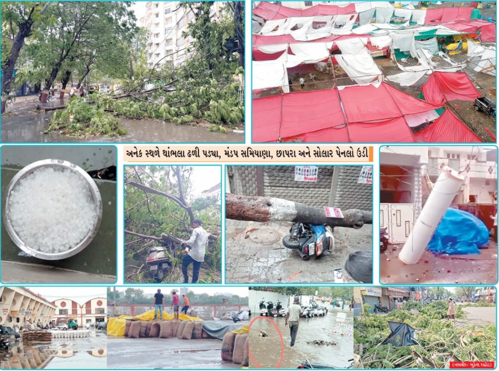 અનેક સ્થળે થાંભલા ઢળી પડ્યા, મંડપ સમિયાણા, છાપરા અને સોલાર પેનલો ઉડી