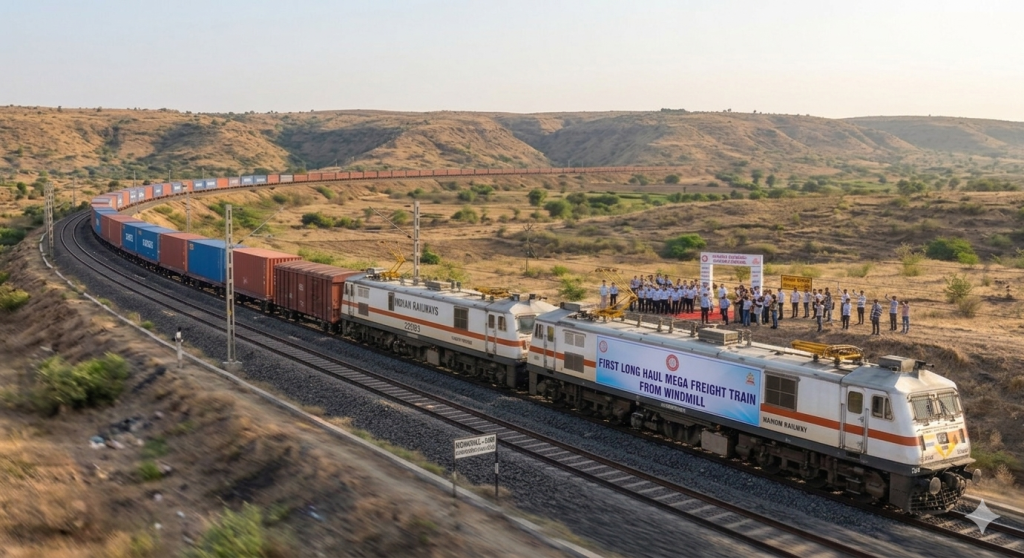 પશ્ચિમ રેલવેના રાજકોટ ડિવિઝને વિન્ડમિલ (જામનગર પાસે) થી તેની પ્રથમ લોંગ-હોલ “મેગા માલગાડી” નું સફળતાપૂર્વક સંચાલન કરીને એક નવો માઇલસ્ટોન સ્થાપિત કર્યો છે. 87 વેગન ધરાવતી આ ટ્રેનને બે માલગાડીઓને જોડીને એક સિંગલ લોંગ-હોલ ટ્રેન તરીકે તૈયાર કરવામાં આવી હતી. આ માલવાહક ક્ષમતા, ઓપરેશનલ કાર્યક્ષમતા અને સંસાધનોના શ્રેષ્ઠ ઉપયોગની દિશામાં એક મોટું પગલું છે. આ પ્રથમ લોંગ-હોલ “મેગા ટ્રેન” ના સંચાલનથી ડિવિઝનને અંદાજે ₹40 લાખની આવક પણ પ્રાપ્ત થઈ છે.