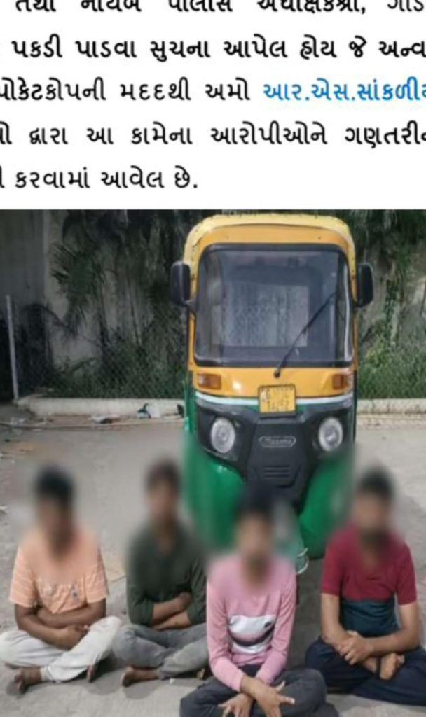આટકોટ પોલીસે સીસીટીવીને આધારે વધુ તપાસ કરી ભરતભાઇ મુળજીભાઇ ચંદ્રપાલ (ઉવ.30 ધંધો રીક્ષા ડ્રાઇવીંગ રહે.રાજકોટ ગોંડલ રોડ પુજારા શો-રૂૂમની પાછળ માનસતા ક્વાર્ટર ત્રીજા માળે નં.36 રાજકોટ),અજયસિંહ ઉર્ફે અર્જુનસિંહ ભીખુભા સોઢા (ઉવ.31 ધંધો.ડ્રાઇવીંગ રહે. રાજકોટ ગોંડલ ચોકડી પાસે આવકાર સીટી-202 રાજકોટ),ગોરધનભાઇ ઉર્ફે ભુરો દેવજીભાઇ ગેડાણી (ઉવ.38 ધંધો.કેટરર્સ રહે.રાજકોટ પોપટપરા શેરી નં.4/10 કોર્નર રાજકોટ) અને શીવમ ઉર્ફે રાજા અજયસિંહ રાજપુત (ઉવ.25 ધંધો મજુરી રહે.રાજકોટ ગોંડલ રોડ પુજારા શો-રૂૂમની પાછળ માનસતા ક્વાર્ટર રાજકોટ)ની ધરપકડ કરી હતી. આટકોટના પી. આઈ આર.એસ.સાંકળીયા સાથે જયેશભાઇ મેપાભાઇ ધ્રાંગીયા, સંજયભાઇ ધનાભાઇ મેટાળીયા, અરવિંદભાઇ હકાભાઇ ઝાપડીયા, જયરાજભાઇ ભાનુભાઇ સોનારાએ કામગીરી કરી હતી.