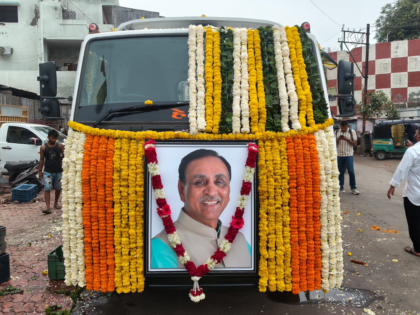 રાજકોટમાં ગ્રીનલેન્ડ ચોકડીથી વૈકુઠ રથમાં સ્વ. વિજયભાઈનો પાર્થિવદેહ તેમના નિવાસ સ્થાને લાવવામાં આવ્યો ત્યારે રસ્તામાં ઠેર ઠેર લોકોએ પુષ્પવર્ષા કરી પોતાની લાગણી વ્યક્ત કરી હતી. તો કેટલાક કાર્યકરો આગેવાનો સ્વ. વિજયભાઈ સાથેના સંસ્મરણો વાગોળી ધૃસ્કે-ધૃસ્કે રડી પડ્યા હતાં