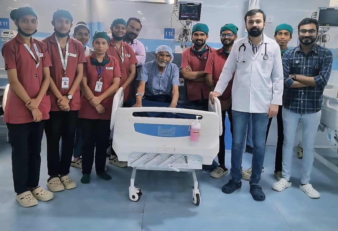10 ફેબ્રુવારી,2026 ના રોજ 83 વર્ષના વૃદ્ધ દર્દી આયુષ હોસ્પિટલ મા ઇમરજન્સી વિભાગમાં અર્ધ બેભાન હાલતમાં આવ્યા. ડો. સત્યજીતસિંહ જાડેજા સાહેબ દ્વારા ઉંડાણમાં તપાસ કરતા જણાયું કે દર્દી નું ઓક્સિજન લેવલ માત્ર 78% છે, આંચકી આવેલી છે, હૃદયના ધબકારા અનિયમિત છે, લોહી ની ઉલટી થય છે અને એમને એસ્પિરેશન ન્યુમોનીયા નામની ગંભીર બિમારી લાગુ પડેલ છે, દર્દી નું સોડિયમ લેવલ ખુબ ઓછું છે, ફેફસામાં બંને બાજુ અતિશય ચેપ ફેલાયેલો છે, તેમજ દર્દીનું GCS લેવલ ખૂબ ઓછુ જણાતા અને શ્વસનક્રિયા અતિશય ગંભીર હોવાથી તેમને તાત્કાલીક વેન્ટીલેટર પર મૂકવામાં આવ્યાં. આમ 83 વર્ષની ઉંમર ની સાથે આટલી બધી જીવલેણ બીમારીઓ એક સાથે લાગુ પડેલ હોવા છતાં ડો.સત્યજીતસિંહ જાડેજા નું ઉડાણ પૂર્વકનું નિદાન અને સચોટ સારવાર ફરીવાર સફળ થતા અને દર્દીને ખૂબ સારૂ થય જતા માત્ર એક અઠવાડિયામાં દર્દી ની હોસ્પિટલ માંથી રજા કરવામાં આવી.