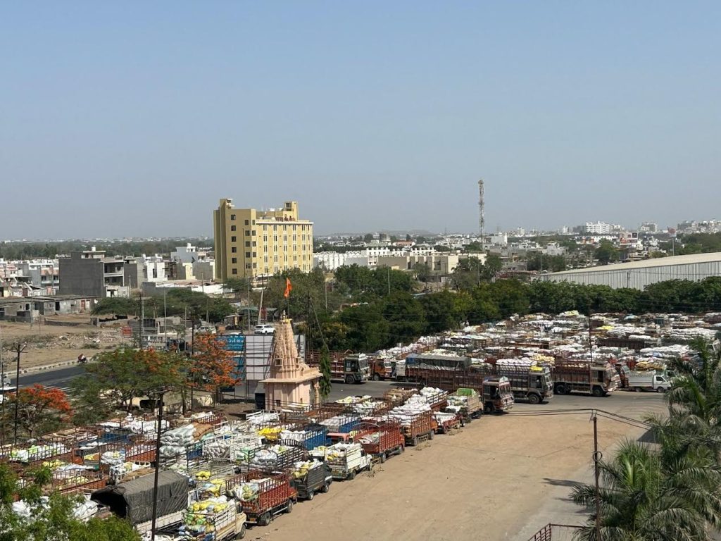 રાજકોટ માર્કેટ યાર્ડમાં રવિ સિઝન જામી છે અને દૈનિક લાખો જણસીની આવક થઈ રહી છે. આજે ચણાની રેકોડબ્રેક આવક થઈ હતી. ગઈકાલથી સરકારે ટેકાના ભાવે ખરીદી પણ શરૂ કરી છે. આજે યાર્ડમાં સાડાત્રણ લાખથી વધુ જણસી ઠલવાઈ હતી. જ્યારે 1200થી વધારે વાહનોની લાંબી લાઈન લાગી હતી.