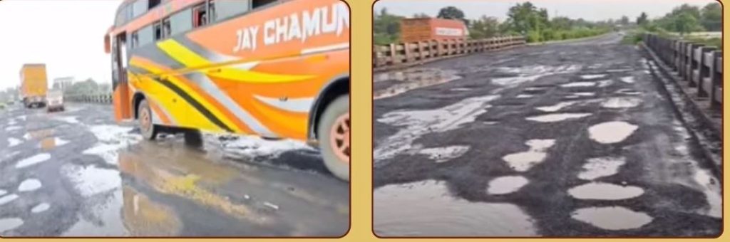 રસ્તાાઓ પર પડેલા ખાડાઓ અને તૂટી ગયેલા રસ્તાઓ પર નવા પુલ અને એલિવેટેડ રોડ બની રહ્યા હોવાથી બાયપાસ આપવામાં આવ્યા હોવાતી તથા નેશલ હાઈ વ 9 ઉપર ઘણાં પુલોના રિસરફેસિંગના કામ માટે ખોદકામ કરવામાં આવ્યા હોવાથી રાજ્યમાંથી પસાર થતાં અને રાજ્યમાંથી પર રાજ્યમાં જતાં વાહનો માટે ગંભીર સમસ્યા નિર્માણ થઈ રહી છે. વડોદરા અને સુરત વચ્ચેના રોડ પર ચાર બ્રિજની સરફેસ ખોલી નાખી છે.