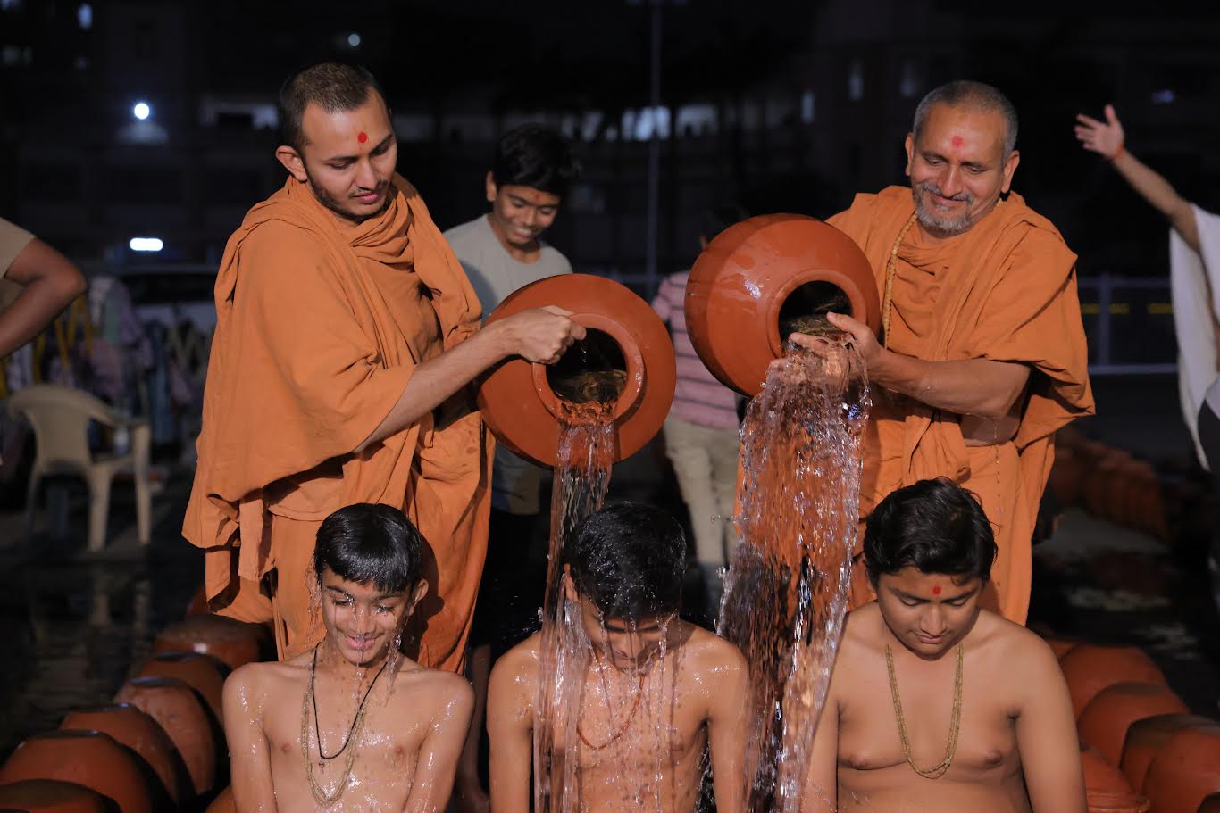 ગુરુકુળમાં સંતો-વિદ્યાર્થીઓ-હરિભકતોનું માઘ સ્નાન