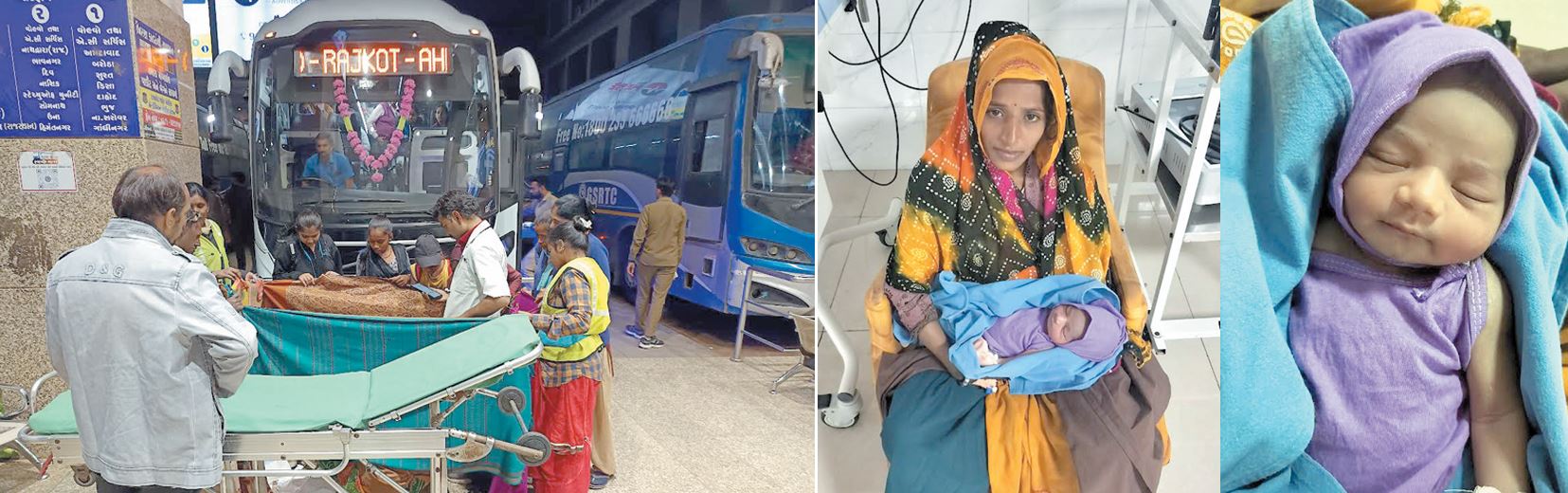 ફરજ પરના ઇન્ચાર્જ સ્ટેન્ડ ઇન્ચાર્જ સુભાષભાઈ ચાવડા તાત્કાલિક 108 બોલાવી તત્કાલીન સમયે એ ડિવિઝનનો પોલીસ સ્ટાફ 31 ડિસેમ્બરના બંદોબસ્તમાં હોવાને પદલે હાજર ન હોય. સગર્ભા મહિલા ને કે તેના બાળકને ભીડમાં કોઈ હાનિ ન પહોંચે એટલા માટે તે સમયે ઉપસ્થિત ગુજરાત એસ.ટી મુસાફર હિતરક્ષક સમિતિના ગજેન્દ્રસિંહ ઝાલા, ફરજ પરના સ્ટેન્ડ ઇન્ચાર્જ સુભાષભાઈ ચાવડા, ટ્રાફિક કંટ્રોલર સુરેશભાઈ દલસાણીયા, લાડાણીભાઈ એ વિસ્તારને કોર્ડન કરી એસ.ટી સ્ટાફ દ્વારા સમયસર મદદ મળી હતી. 108 આવતા ઇન્જેક્શન આપતા નોર્મલ ડિલિવરી થયા બાદ જનાના હોસ્પિટલમાં મહિલા અને બાળક ને મોકલવામાં આવેલ હતા બાળક અને મહિલાની તબિયત એકદમ સ્વસ્થ હતી અને ખુશીની બાબતતો એ છે કે તે મહિલાને બાબાનો જન્મ થયો હતો. માતા સાવિત્રી સંતાપ અને બાળક એકદમ સ્વચ્છ ચે અને બે કિલોનું વજન હોવાનું સિવિલની પાટીમાં જણાવ્યું હતું.