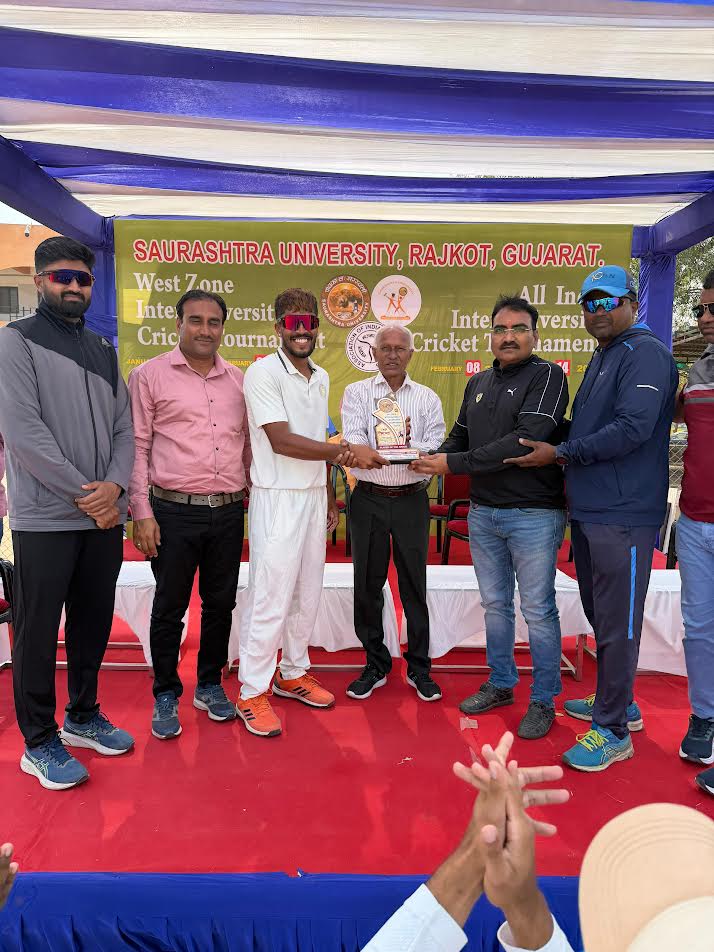 સૌરાષ્ટ્ર યુનિવર્સિટી દ્વારા આયોજિત ઓલ ઇન્ડિયા યુનિવર્સિટી ક્રિકેટ ભાઈઓ સ્પર્ધામાં સૌરાષ્ટ્ર યુનિવર્સિટીની ક્રિકેટ ટીમે ઉત્કૃષ્ટ પ્રદર્શન કરીને ઓલ ઇન્ડિયામાં ત્રીજો ક્રમ મેળવી બ્રોન્ઝ મેડલ પ્રાપ્ત…