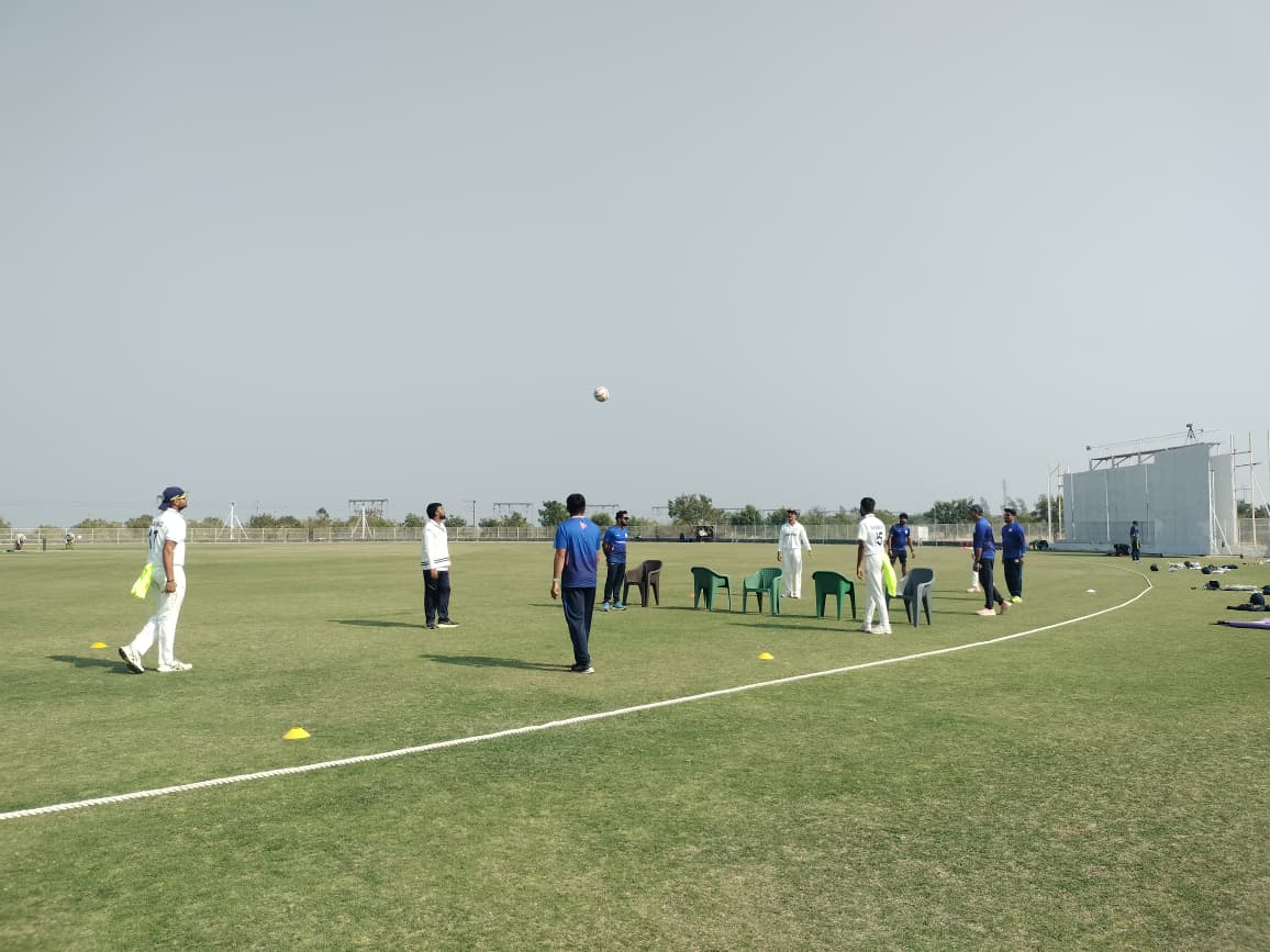 સૌરાષ્ટ્રે પ્રથમ બેટીંગ કરી હતી પરંતુ હાર્વિક દેશાઇ 13, ચિરાગ જાની 8, અર્પિત વસાવડા માત્ર 2 રનમાં પેવેલીયન ભેગા થઇ જતા સૌરાષ્ટ્રની 41 રનમાં ત્રણ વિકેટ પડી ગઇ હતી. તે સમયે રવિન્દ્ર જાડેજા બેટીંગમાં ઉતર્યો હતો. ક્રિકેટ રસીકોને આશા હતી કે તે મોટો સ્કોર કરશે. પરંતુ માત્ર 7 રનના સ્કોર ઉપર જાડેજા આઉટ થઇ જતા સૌરાષ્ટ્ર મુશ્કેલીમાં મુકાઇ ગયું હતું. જેથી જય ગોહીલે 9 ચોક્કા અને 3 છગા સાથે 82 રન ફટકારીને સૌરાષ્ટ્રની આબરૂ બચાવી હતી. પંજાબ વતી હરપ્રિત બ્રારે 6 વિકેટ ઝડપી હતી. જો કે પંજાબની શરૂઆત પણ ખરાબ થઇ હતી. ઓપનર હરનુરસિંઘ શુન્ય રને આઉટ થયો હતો. જો કે પ્રભશિમરનસિંહે 44 અને ઉદય સરને 23 રન કરીને બાજી સંભાળી હતી. પરંતુ તેના આઉટ થયા બાદ નેહલ વાઢેરા 6 અને સુકાની શુભમન ગીલ મીંડુ મુકાવીને આઉટ થતા પંજાબની ચાના સમયે પાંચ વિકેટ 87 રનમાં પડી ગઇ છે.