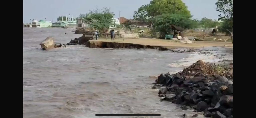 પ્રોટેક્શન વોલ તુટતા ઘોઘામાં દરિયાના પાણી ઘૂસ્યા