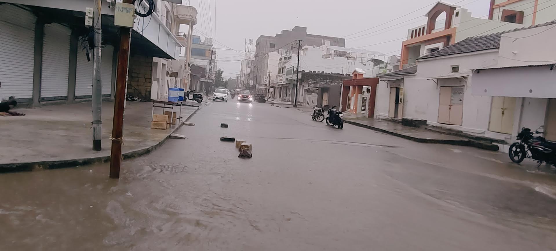 ઉપલેટા છેલ્લા 15 થી 20 દિવસ ના વરસાદી આરામ બાદ આજે બપોરના ત્રણ કલાકથી વરસાદ શરૂૂ થયેલ હતો જે જોત જોતા માં પાંચ વાગ્યા સુધીમાં લગભગ 3 ઇંચ જેવું પાણી વરસી ગયું છે વરસાદના પગલે સમગ્ર શહેરમાં વીજ પુરવઠો બંધ કરી દેવામાં આવેલ હતો એકાએક વીજ પુરવઠો બંધ થતાં અને વરસાદી માહોલ વચ્ચે રોડ રસ્તાઓ તેમજ બજારો સુમસામ દેખાઈ રહી હતી તો બીજી તરફ વરસાદના પગલે લાંબા સમય બાદ વરસાદ વરસતા યુવા ધન તેમજ બાળકો વરસાદની મોજ માણવા અને નાહવા માટે રોડ રસ્તા ઉપર નીકળી પડ્યા હતા જ્યારે ત્રણ ઇંચ વરસાદના પગલે શહેરના રાજમાર્ગો અને મુખ્ય રસ્તાઓ પર અડધો ફૂટ જેવા પાણી ભરાયા હતા.