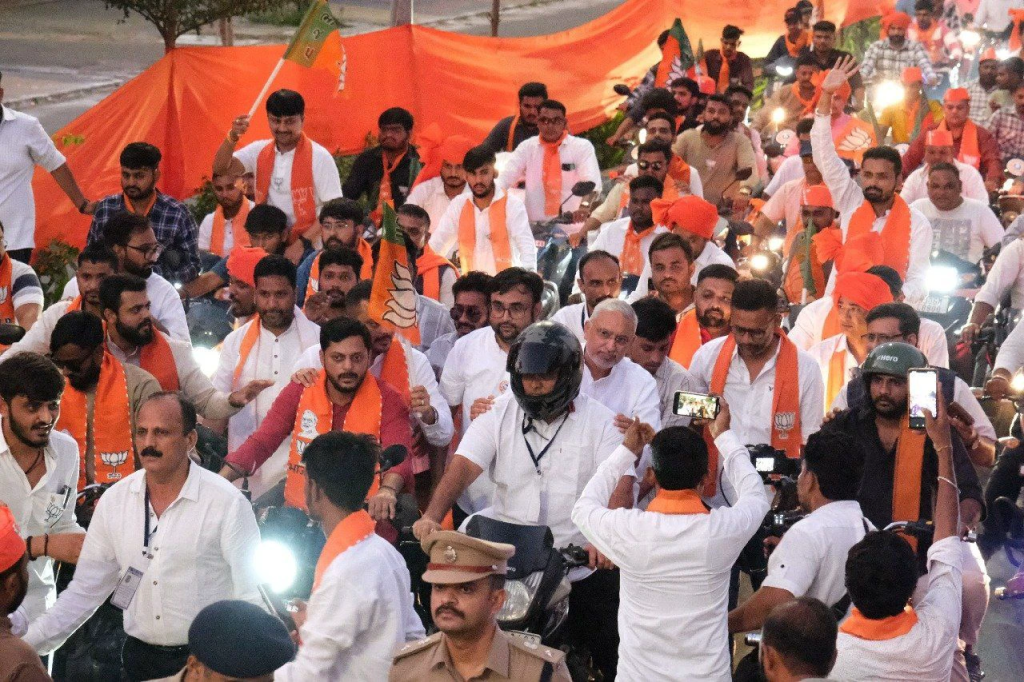 ગુજરાત ભાજપ પ્રદેશ પ્રમુખ જગદીશ વિશ્વકર્માનો વડોદરાના કારેલીબાગ સ્થિત અંબાલાલ પાર્ક ખાતે શહેર-જિલ્લાના કાર્યકરો દ્વારા અભિવાદન કાર્યક્રમનું આયોજન કરવામાં આવ્યું હતું. આ કાર્યક્રમમાં રાજ્યના મુખ્યમંત્રી ભુપેન્દ્ર પટેલ પણ ખાસ ઉપસ્થિત રહ્યાં હતા ભાજપ યુવા મોરચા દ્વારા ભવ્ય બાઇક રેલીનું આયોજન કરવામાં આવ્યું હતું. જેમાં મોટી સંખ્યામાં બાઇક રેલીમાં કાર્યકરો જોડાયા હતા.દરમિયાન પોણા છ વાગ્યાની આસપાસ વડોદરા એરપોર્ટ પર તેઓની ફ્લાઇટ પહોંચી હતી પ્રોટોકોલ મૂજબ પ્રદેશ પ્રમુખ જગદીશ વિશ્વકર્મા અને રાજ્યના મુખ્યમંત્રી ભુપેન્દ્ર પટેલ એક જ કારમાં સાથે એરપોર્ટથી બહાર નિકળ્યા હતા.