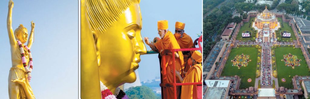 મહંતસ્વામી મહારાજના વરદ હસ્તે ગાંધીનગર અક્ષરધામ ખાતે ભગવાન સ્વામિનારાયણના તપોમય કિશોર સ્વરૂપ શ્રી નીલકંઠ વર્ણી મહારાજની મૂર્તિની વેદોક્ત પ્રતિષ્ઠા સંપન્ન: પૂજનવિધિમાં 555 તીર્થોનાં જળનો ઉપયોગ કરાયો