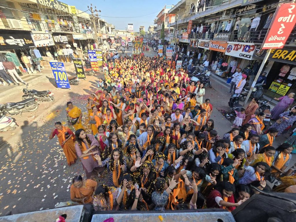 શ્રી પુરૂૂષોત્તમ પ્રતિષ્ઠા મહોત્સવ અંતર્ગત કથાના મુખ્ય મનોરથી અને પૂર્વ પોરબંદર સાંસદ રમેશભાઇ ધડુકના નિવાસસ્થાને થી બપોર બાદ ભવ્ય શોભાયાત્રા નીકળી હતી. પોથીયાત્રા કૈલાસ બાગ સોસાયટી, વિક્રમસિંહજી કોમ્પ્લેક્ષ રોડ, બસ સ્ટેન્ડ, ત્રણ ખૂણીયા, જેતપુર રોડ પરથી માલવીયાનગરમાં આવેલ હવેલી પર પોહચી હતી. પોથીયાત્રામાં નાસિક ઢોલ, 15 ઘોડીઓ, 20 બુલેટ, 3 ડીજે, ઢોલ ડંકા ગ્રુપ, ડાંગી ડાસ (ઢોલ ડાસિંગ), હિન્દૂ ધર્મમાં આવતા તમામ દેવી દેવતાઓ, બડે હનુમાન, 4 ખુલ્લી જીપ, સહેનાઈ બેન્ડ, 3 વિન્ટેજ કાર, 6 ઘોડા સાથે બગી અને શણગારેલા 4 ટ્રેકટર જોડાયા હતા.પોથીયાત્રામાં ઞકઉ ક્ધયાછાત્રાલયના પ્રમુખ વિઠ્ઠલભાઈ ધડુક, નાગરિક બેન્કના વાઇસ ચેરમેન જ્યોતિરાદિત્યસિંહ જાડેજા, અશ્ચિનભાઈ રૈયાણી પ્રમુખ નગરપાલિકા, અશોકભાઈ પીપળીયા ચેરમેન નાગરિક બેંક, અલ્પેશભાઈ ઢોલરીયા ચેરમેન માર્કેટ યાર્ડ, પ્રફુલભાઈ ટોળીયા, રાજકોટ જિલ્લા ભાજપ મહામંત્રી રવિભાઈ માકડીયા, ગોપાલભાઈ શિંગાળા – પૂર્વ ચેરમેન માર્કેટ યાર્ડ, ઉપેન્દ્રસિંહ ચુડાસમા પ્રમુખ શહેર ભાજપ, ધર્મેન્દ્રસિંહ જાડેજા વાઈસ ચેરમેન માર્કેટ યાર્ડ, ક્રિપાલસિંહ જાડેજા કારોબારી ચેરમેન નગરપાલિકા, ભાવનાબેન રૈયાણી પૂર્વપ્રમુખ નગરપાલિકા, જયદીપસિંહ જાડેજા, કિશોરભાઈ ધડુક, અશ્વિનભાઈ પાંચાણી, દિપકભાઈ રૂૂપારેલીયા, સમીરભાઈ કોટડીયા, ધીરૂૂભાઇ દેસાઈ (ઉદ્યોગપતિ), રસિકભાઈ મારકણા, મેહુલભાઈ ખાખરીયા, અશ્વિનભાઈ ઠુંમર, નરશીભાઈ બાલધા, ઞકઉ ક્ધયા છાત્રાલયના ટ્રસ્ટીઓ, સામાજિક સંસ્થાના આગેવાનો, રાજકીય આગેવાનો, અગ્રણી ઉદ્યોગપતિઓ, મહિલા મંડળો સહિતના આમંત્રિત મહેમાનો જોડાયા હતા.વૈષ્ણવાચાર્ય પરમ પૂજય ગોસ્વામી 108 શ્રી દામોદરલાલજી મહારાજની આજ્ઞા અને આશીર્વાદથી સોમયાજી દીક્ષિત વૈષ્ણવાચાર્ય પરમ પૂજય ગોસ્વામી 108 શ્રી હરિરાયજી મહોદયના નેતૃત્વમાં સમગ્ર આયોજન કરવામાં આવ્યું છે. ગોંડલ ખાતે નવનિર્મિત શ્રી ગોવિંદકુંજ હવેલીસ્ત્રસ્ત્ર ના શુભ મંગલ શ્રી પુરૂૂષોત્તમ પ્રતિષ્ઠા મહોત્સવ અવસરે આ શ્રીમદ્ ભાગવત કથામૃત મહોત્સવ અને છપ્પનભોગનું આયોજન કરવામાં આવેલ છે. જેમાં આચાર્યપીઠ ઉપર બિરાજી વૈષ્ણવાચાર્ય પરમ પૂજય ગોસ્વામી 108 શ્રી ગોવર્ધનેશજી મહોદય પોતાની રસમય મધુર વાણીમાં કથાનું રસપાન કરાવશે. કથાના સમય બપોરે 3 થી 6 વાગ્યા સુધી રહેશે તો શ્રીજી મનોરથ માટે સમય સાંજે 6.30 થી 7.30 સુધી રહેશે.શ્રીમદ્ ભાગવત કથામૃત મહોત્સવના મનોરથી ગૌ.વા. લવજીભાઈ નાયાભાઈ ધડુક, ગૌ.વા. ઉજીબેન લવજીભાઈ ધડુક ના સ્મરણાર્થે પૂર્વ પોરબંદર સાંસદ રમેશભાઈ ધડુક, મંજુલાબેન રમેશભાઈ ધડુક, નૈમિશભાઈ રમેશભાઈ ધડુક, મોનાબેન નૈમિષભાઈ ધડુક, સાવનભાઈ ધડુક, ફ્રેનિકુમાર રમેશભાઈ વેકરીયા, દ્રષ્ટિબેન ફ્રેનિકુમાર વેકરીયા, નરેન્દ્રભાઈ લખમણભાઈ ભાલાળા, 